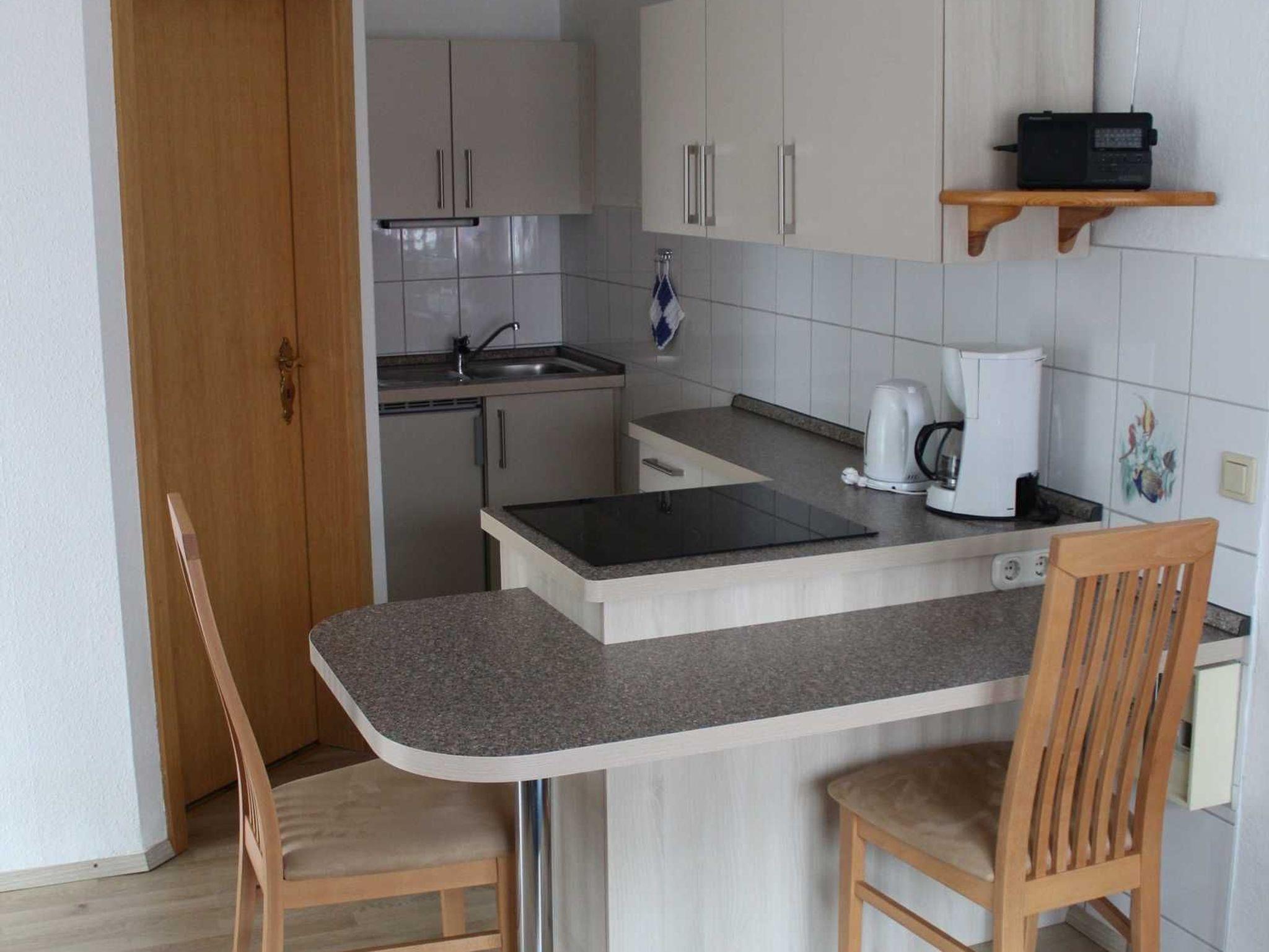 • 1 Wohnraum mit Einbauküche und Esstresen