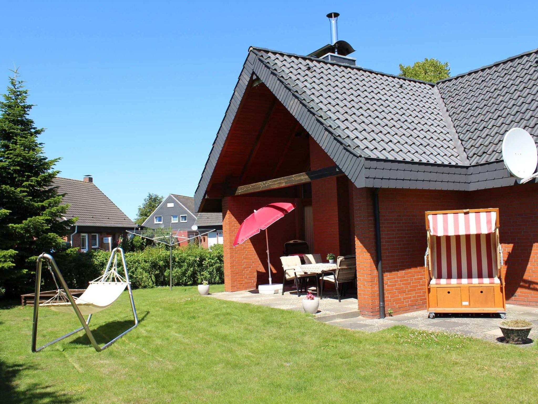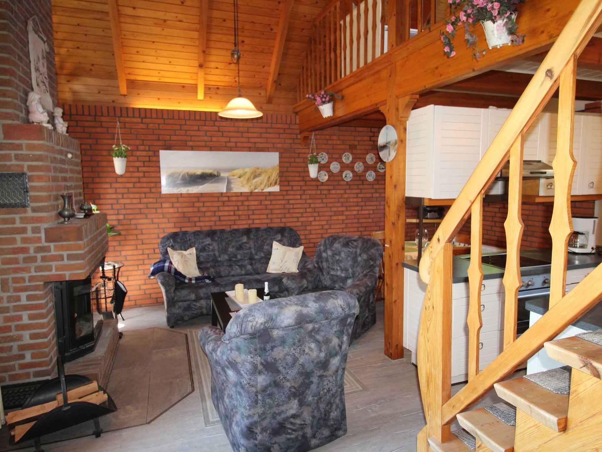 Das Ferienhaus Sandfoort bietet offene Bauweise mit Kamin, Terrasse und familienfreundlicher Ausstattung in Friedrichskoog Spitze.