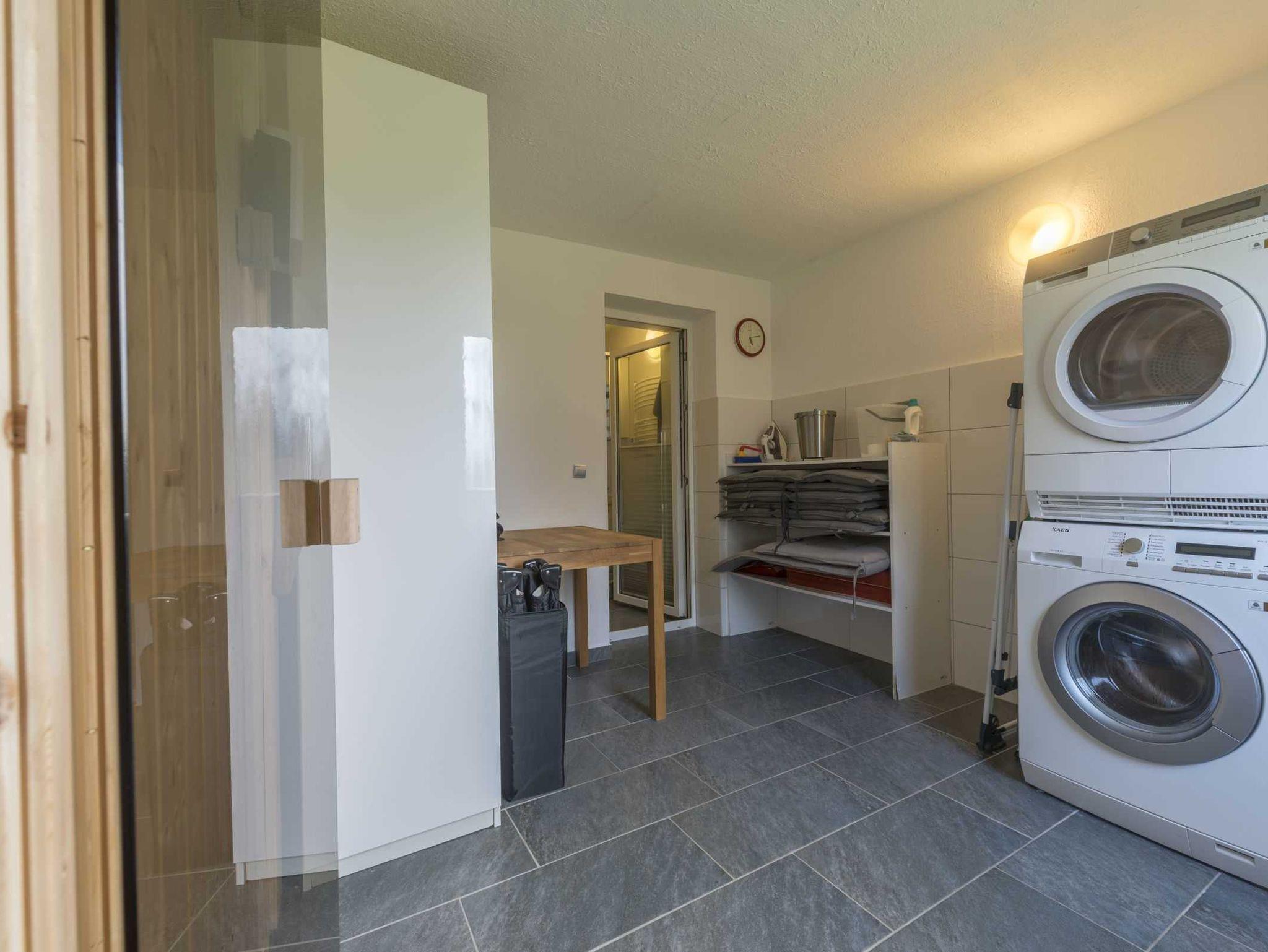 • Hauswirtschaftsraum mit Waschmaschine, Trockner und Fahrradunterstellmöglichkeit