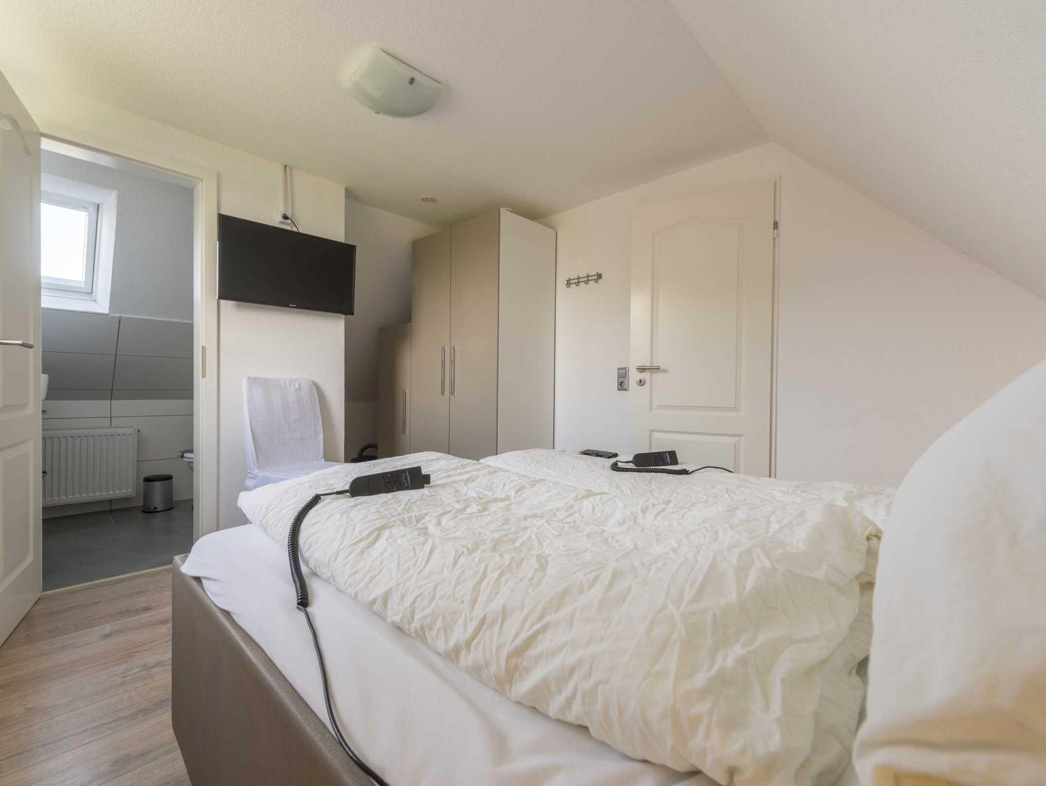 • Schlafzimmer im 1. Stock mit Doppelbett (180x200 cm, Seniorenbett elektrisch verstellbar)