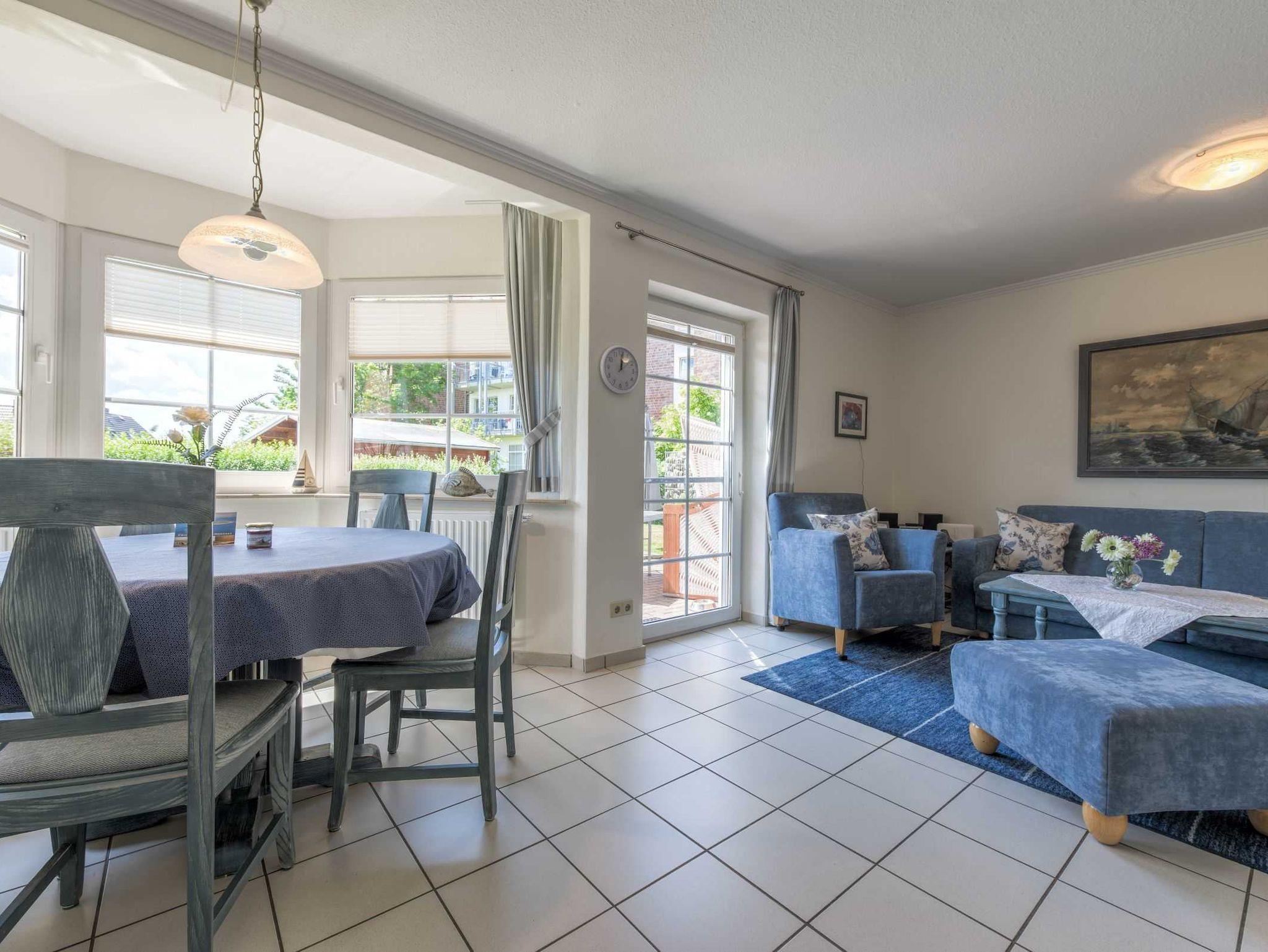 Erdgeschoss mit Terrasse für 2-4 Personen inkl. Gartenmöbel, Liegewiese, Strandkorb und Sandkiste. Wohn-/Schlafraum, Schlafraum, Küche, Dusche/WC. Sat-TV, Telefon, Kinderbett und Kinderhochstuhl. Die Wohnung verfügt über einen Wlan-Anschluß. Bettwäsche und Handtücher vorhanden.