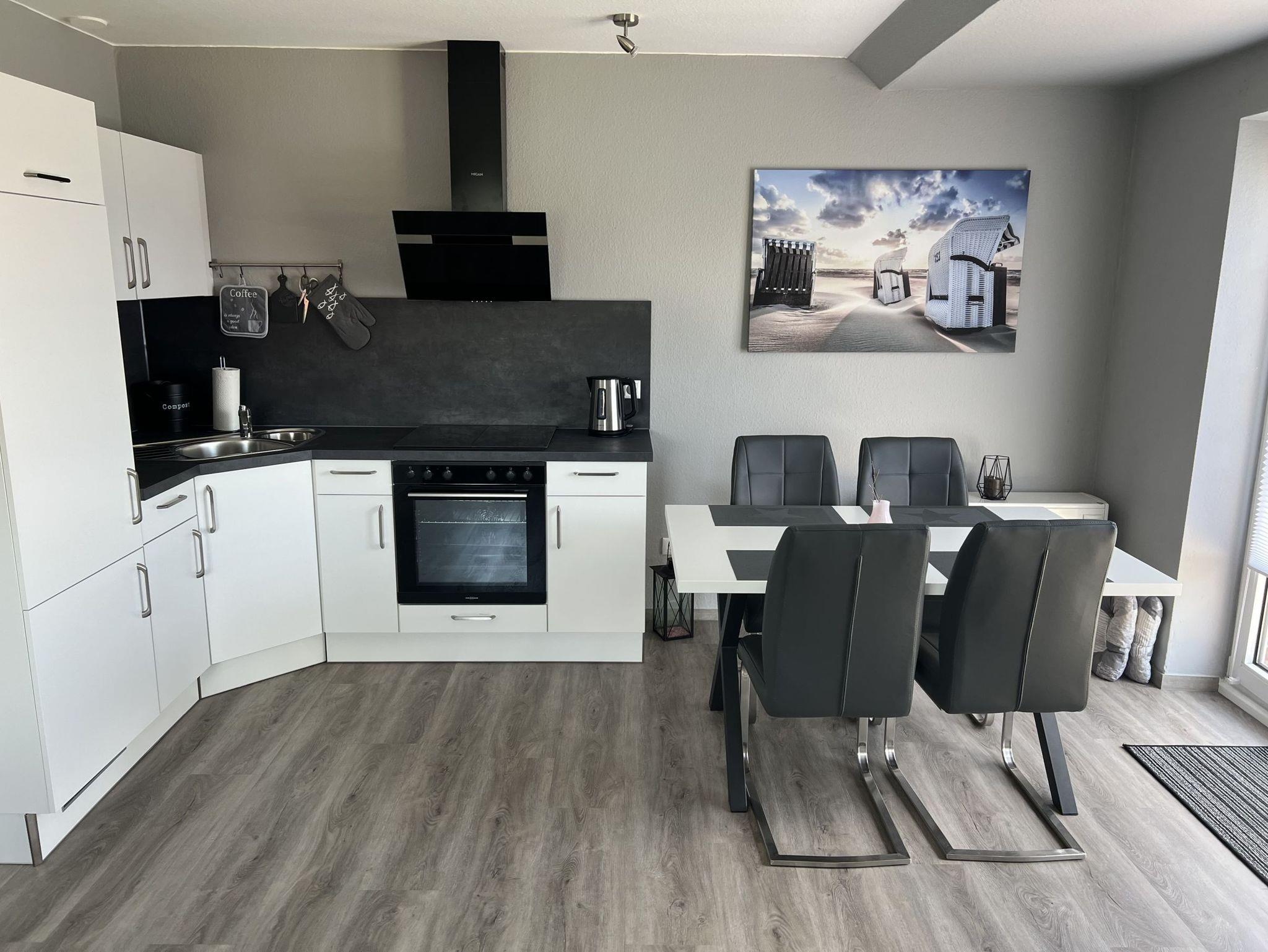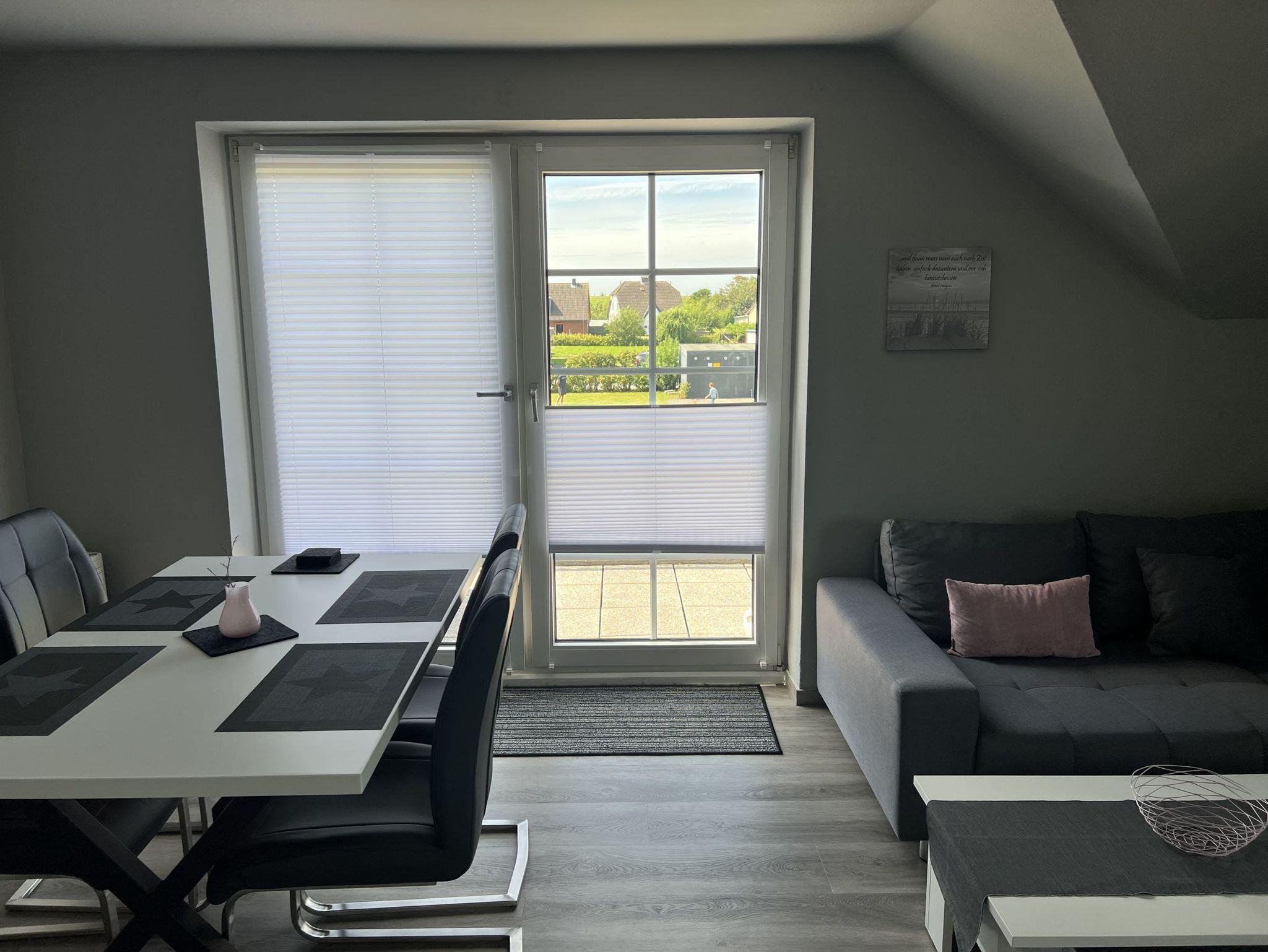 Helle Ferienwohnung mit Deichblick in Friedrichskoog-Spitze, ideal für Familien mit bis zu 4 Personen.