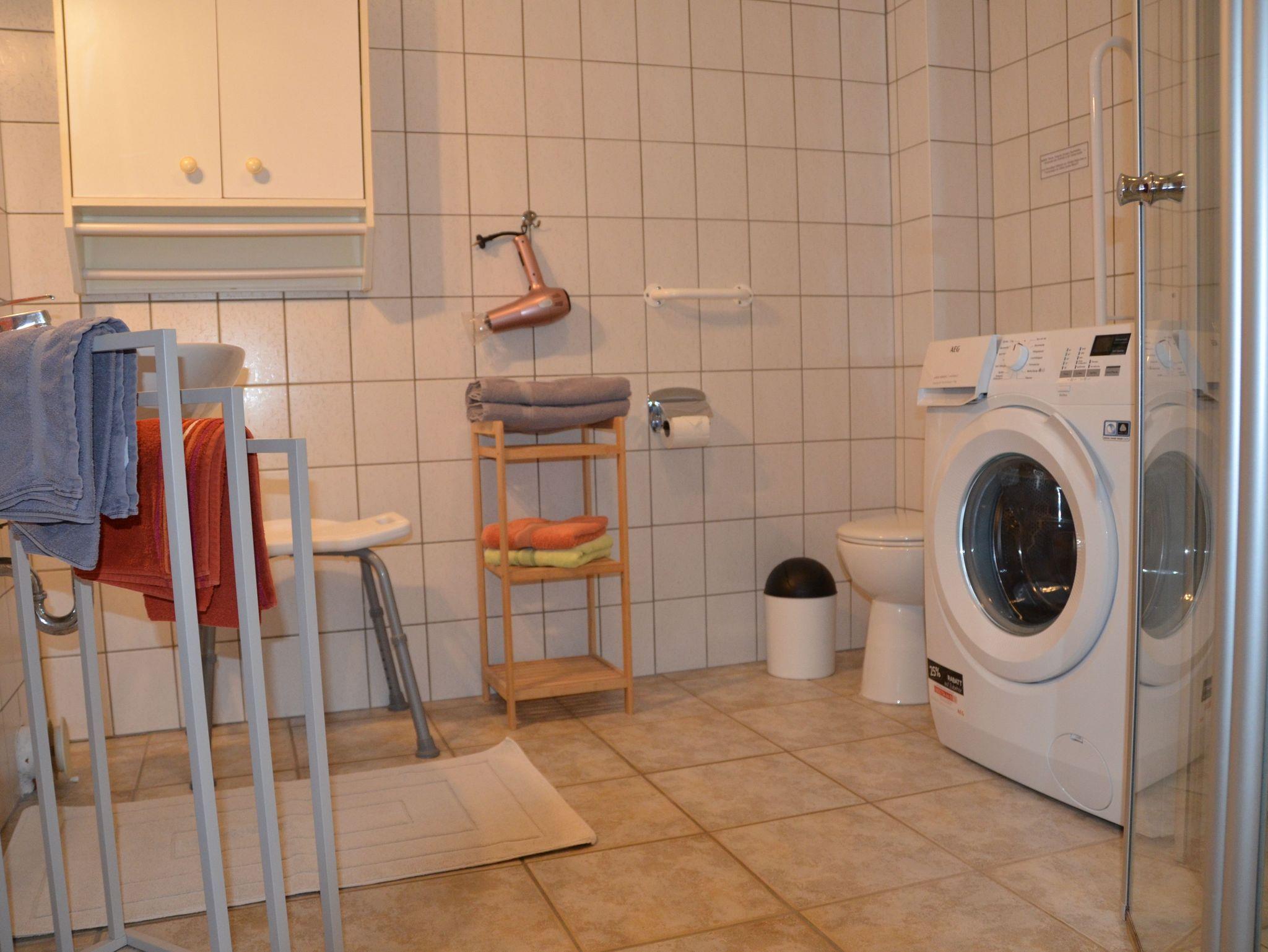 • Dusche/WC (Erdgeschoß) mit ebenerdiger Dusche und Waschmaschine