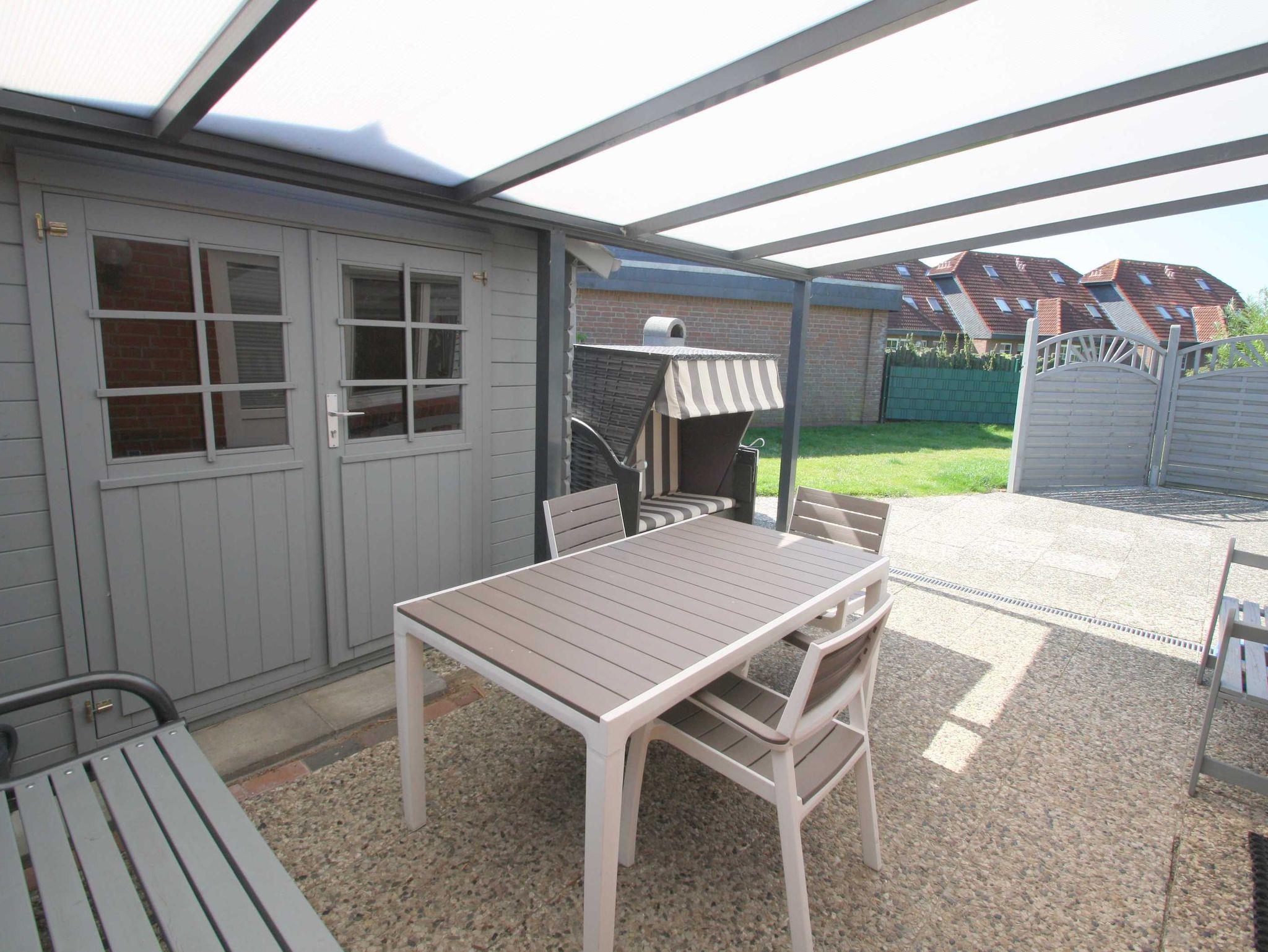 ruhige Sackgassenlage, großer, ca. 300 m² eingezaeunter Garten, schöne uneinsehbare Terrasse mit Strandkorb und Gartenmöbeln und Grill, ca. 500m zum Strand, Carport, -Abstellraum für Fahrraeder