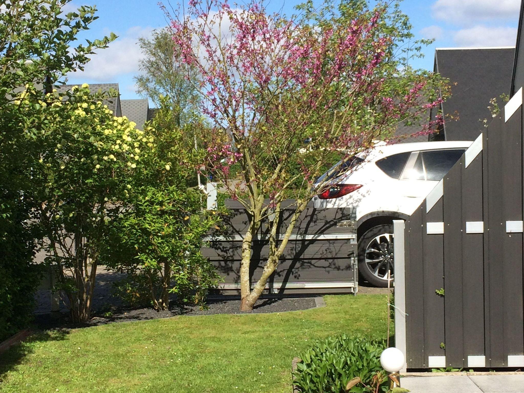 Das Grundstück ist rundherum begrünt, es verfügt über Gartenmöbel für beide Terrassen, Liegen, und Grill.
