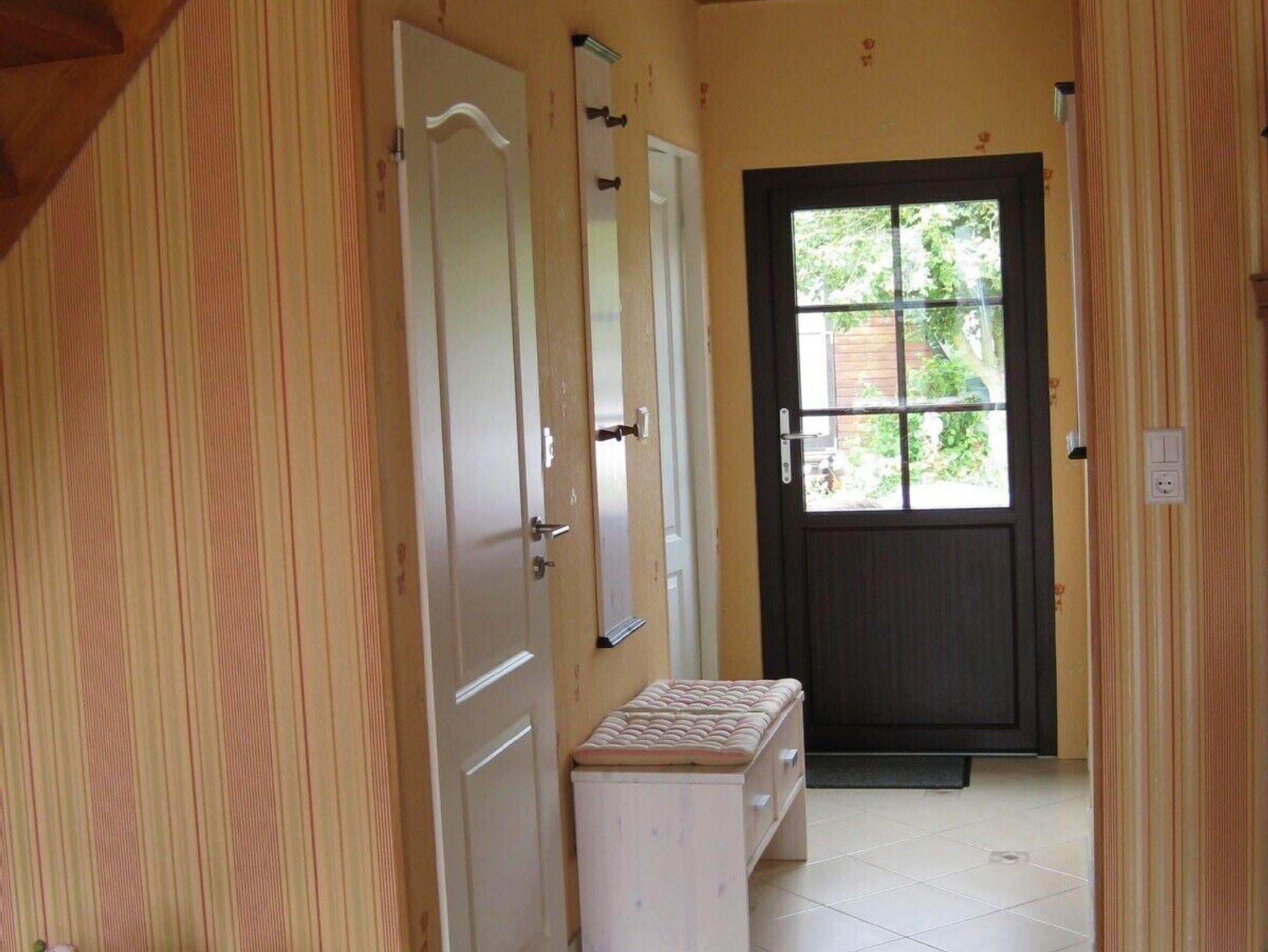 Über einen kleinen Flur gelangen Sie in den gemütlichen Wohn-Essbereich mit Kaminofen.