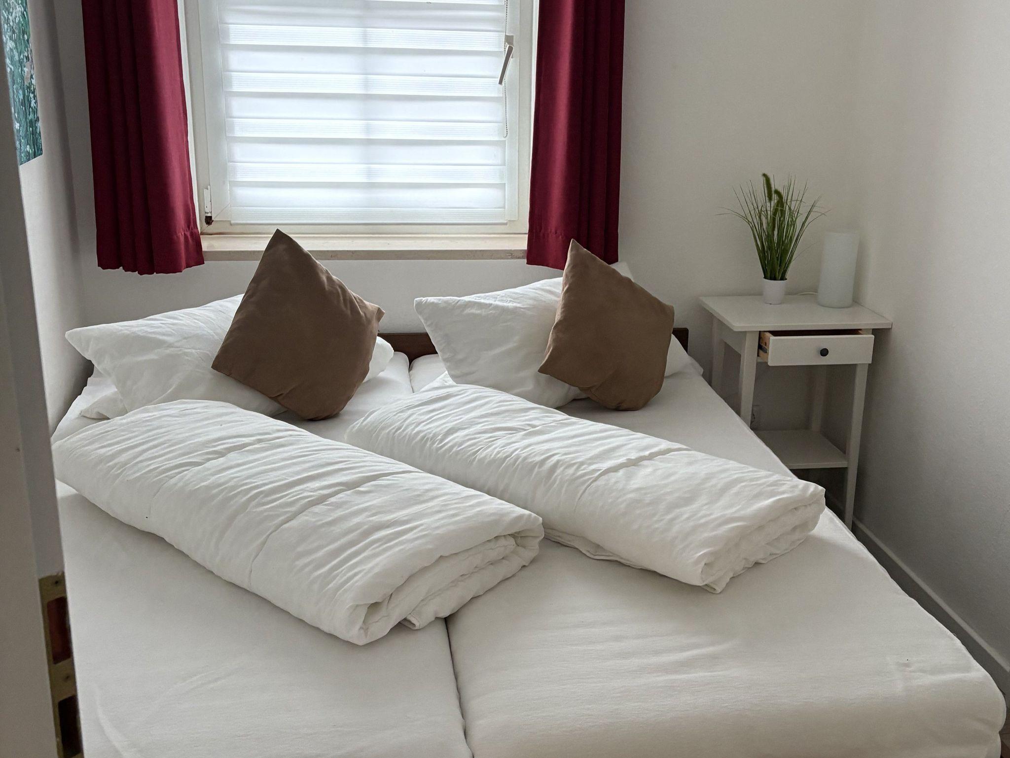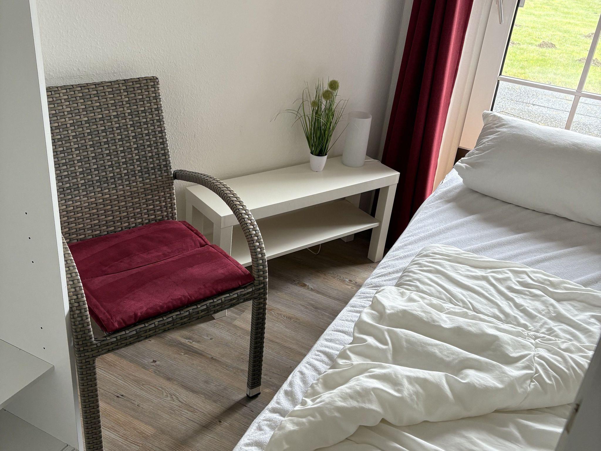 • zwei Schlafräume (1 Schlafraum mit Doppelbett und Einbauschrank, 1 Schlafraum mit Einzelbett und offenem Schrank)