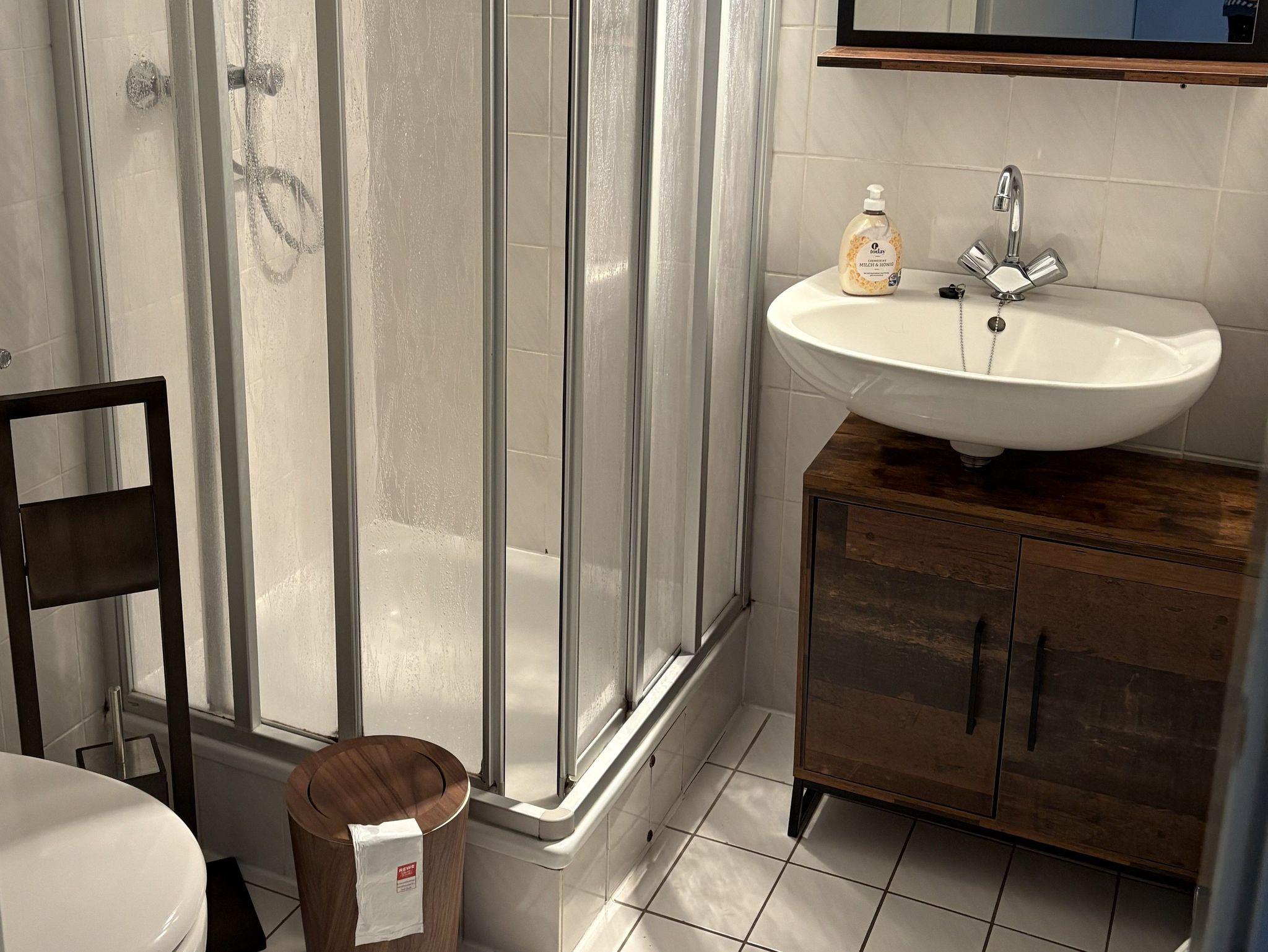 Das moderne Duschbad sorgt für einen angenehmen Start in den Tag. Kostenloses WLAN steht den Gästen zur Verfügung.