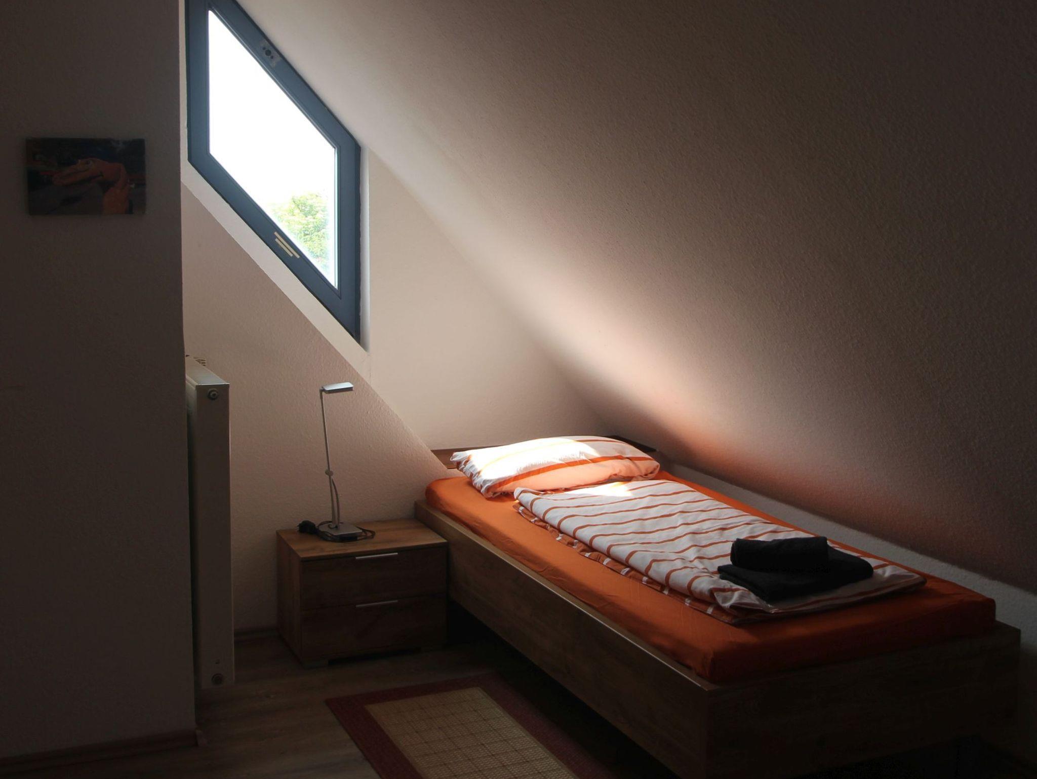 • 1 Schlafraum mit 2 getrennten Betten (1. Stock)