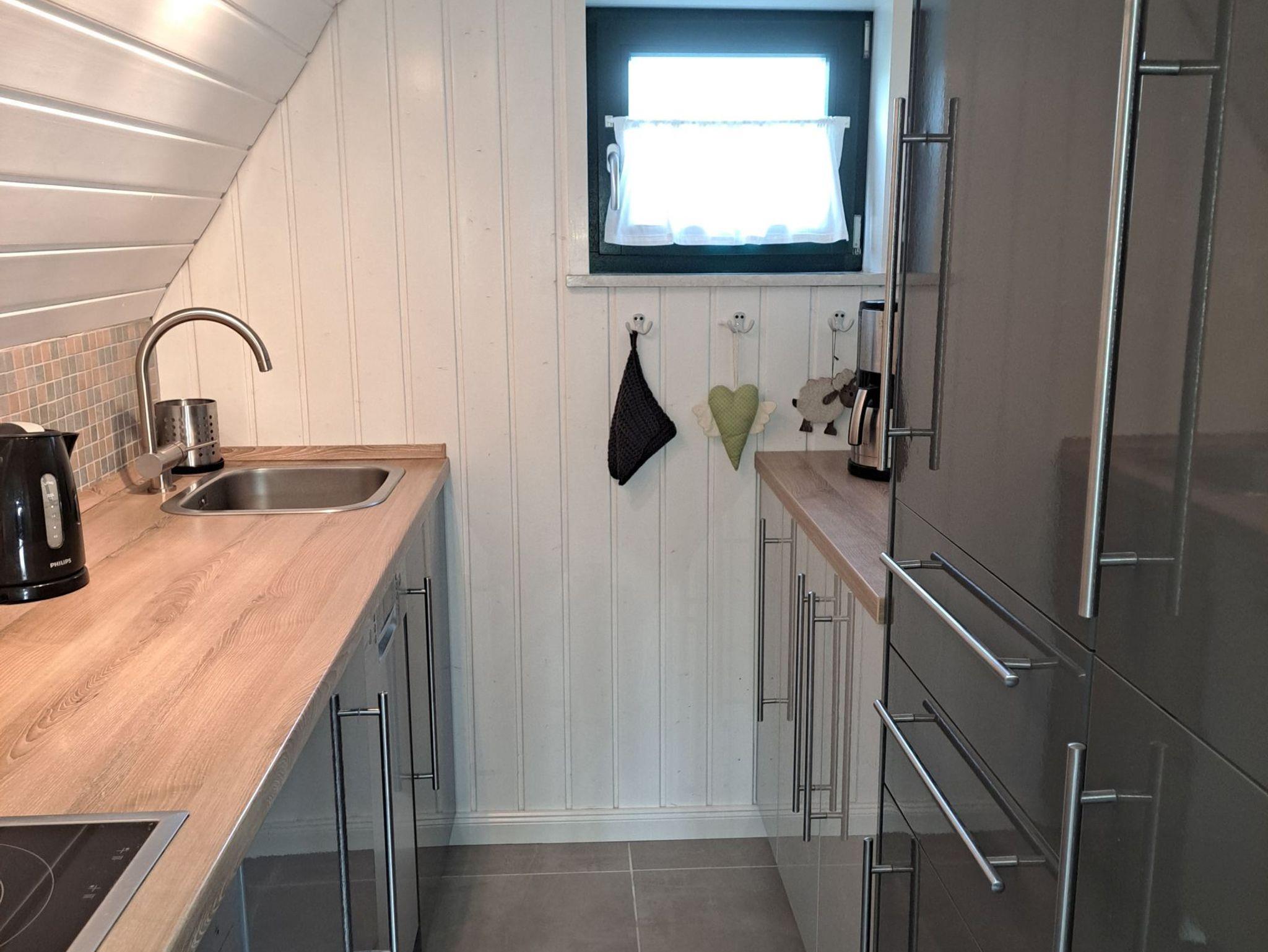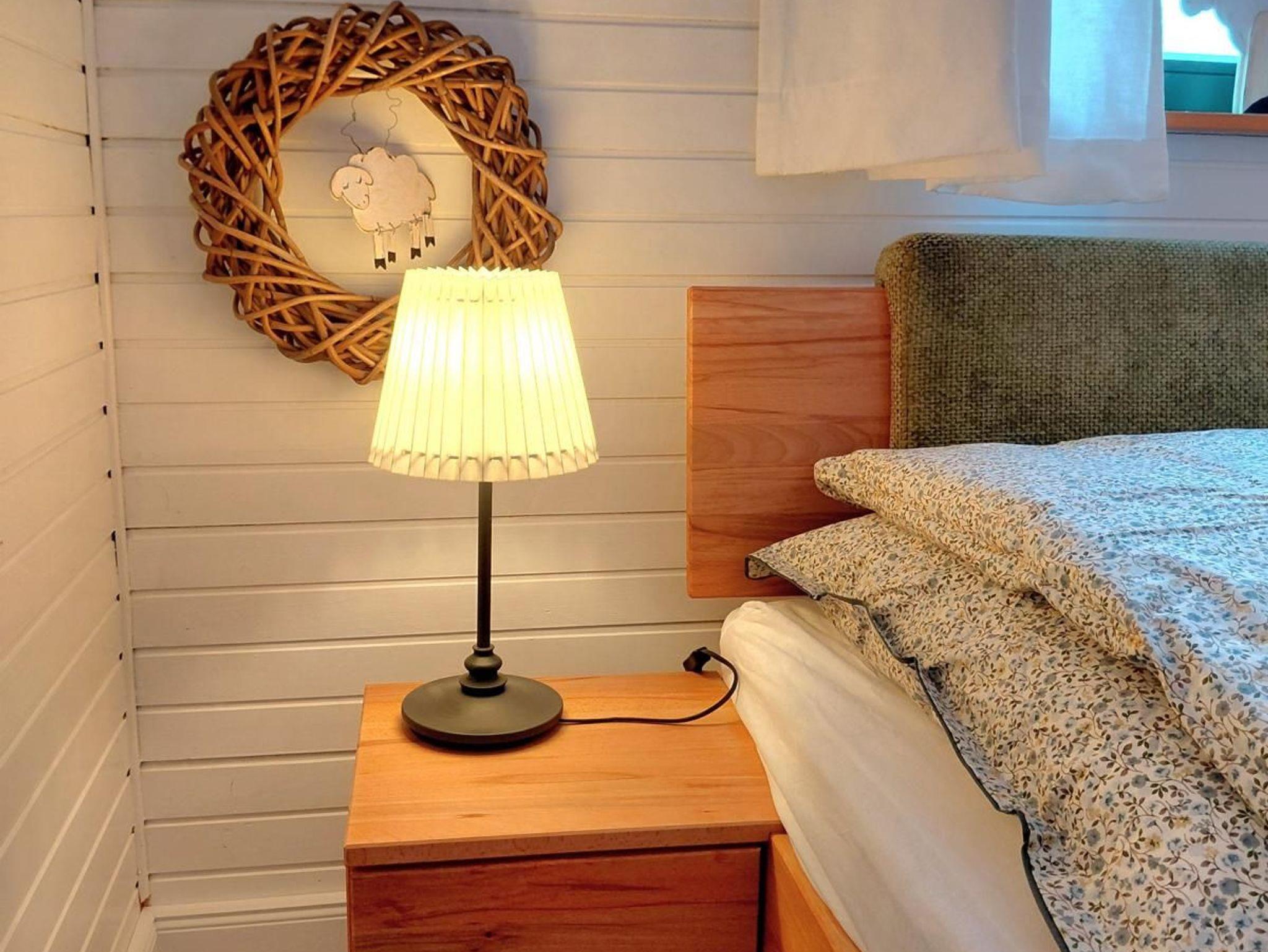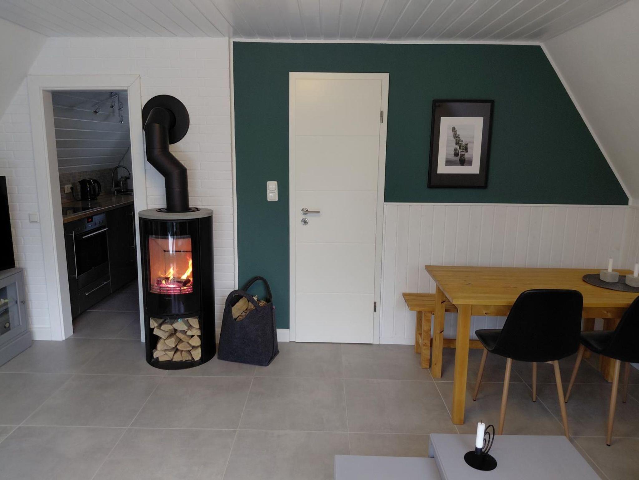 Es handelt sich um ein 2025 komplett neu isoliertes und neu eingedecktes Nurdachhaus. Es verfügt über einen hellen Wohn-/ Essbereich mit SAT-TV und Stereoanlage. Das hochwertige Ledersofa wurde 2023 neu angeschafft. Vom Wohnbereich aus führt eine Tür in ein gemütliches Schlafzimmer mit Doppelbett (200 x 160). Das Schlafzimmer wurde 2026 neu möbliert und besteht aus hochwertiger massiver Wildbuche. Im Obergeschoss befindet sich ein weiteres Zimmer mit zwei Einzelbetten. Hier finden bis zu zwei Kinder ihr eigenes Reich. Die Treppe kann bei Bedarf durch ein Treppengitter gesichert werden. Das Obergeschoss ist mit Laminatboden ausgestattet. Die Küche ist vom Wohnbereich aus begehbar und verfügt über einen Geschirrspüler, Kühlschrank mit Gefrierfach, Herd mit Backofen, Kaffeemaschine, Toaster und Wasserkocher. Geschirr und Gläser sind ausreichend vorhanden. Das Badezimmer wurde 2020 komplett renoviert. Die Fußböden im Untergeschoß wurden in moderner Betonoptik 2023 komplett neu gefliest. Das Haus verfügt über W-LAN.