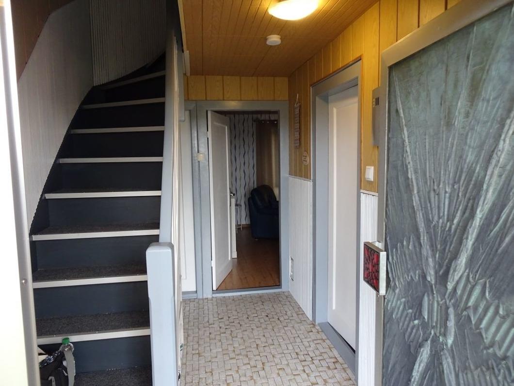 Der Zugang erfolgt ebenerdig mit nur einer kleinen Stufe vor der Haustür.