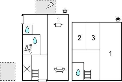 Badezimmer (nr. 2) - WC. Warmes und kaltes Wasser. Dusche