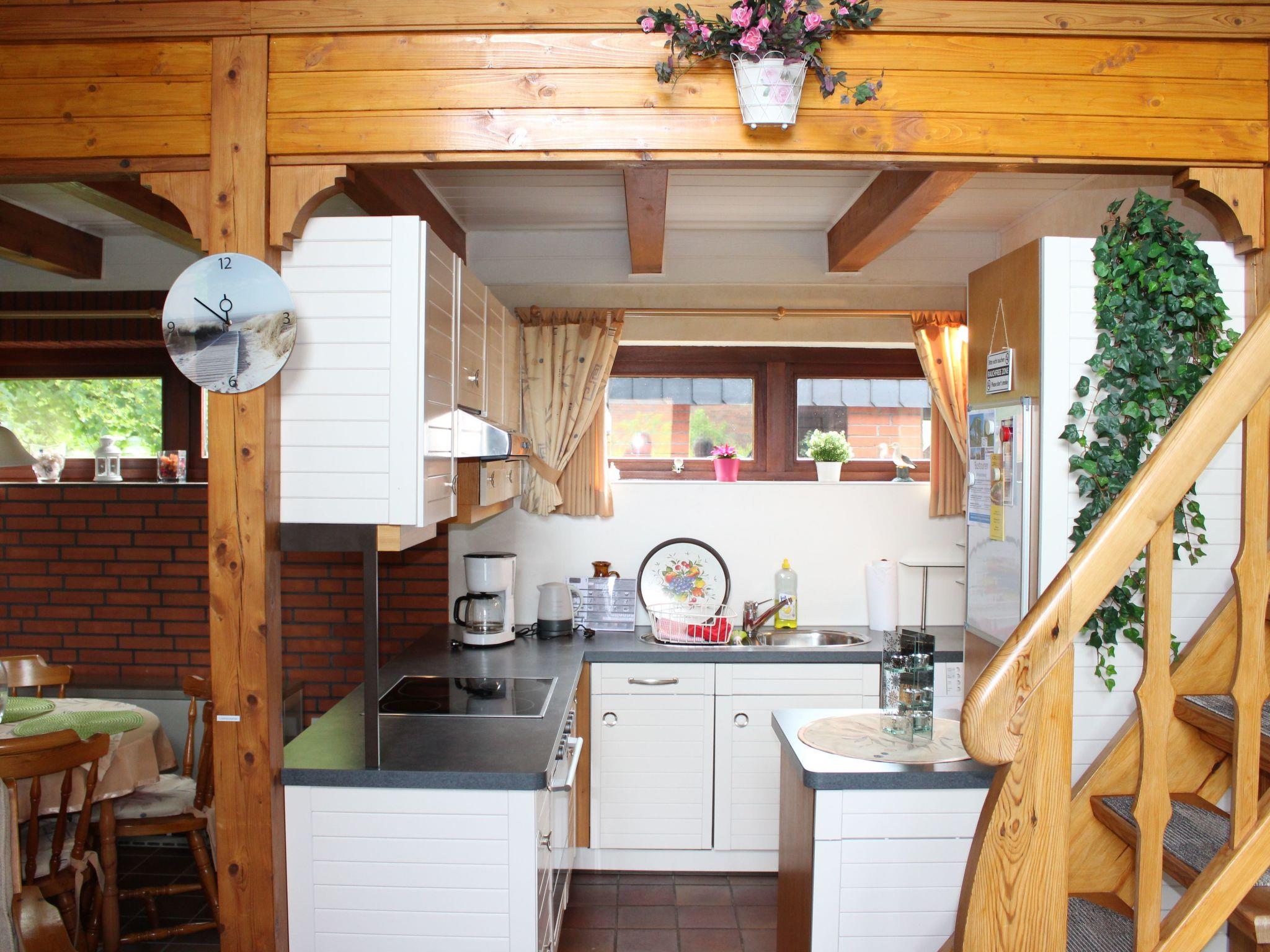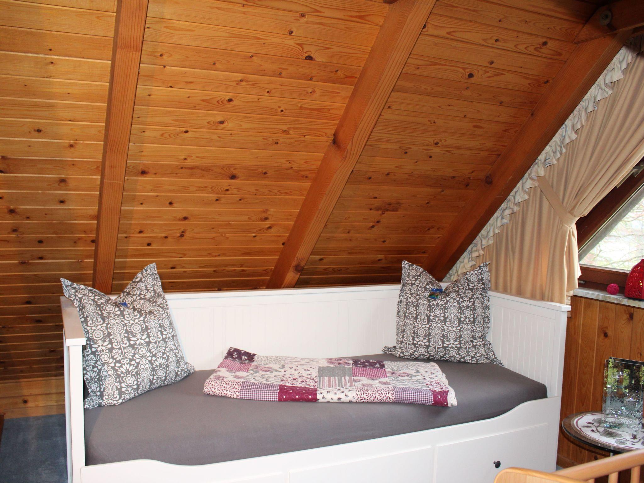 Das Ferienhaus besticht durch seine offene Bauweise mit Galerie im Wohnbereich. Im Erdgeschoß befindet sich der Wohnbereich mit Essecke offener Küche (4er Ceranfeld, Backofen, Mikrowelle, Kühlschrank mit Eisfach) und Kamin. Vom Wohnbereich erfolgt der Zugang zur Terrasse. Ebenfalls im Erdgeschoß befindet sich ein Schlafzimmer , sowie das Badezimmer. Der zweite Schlafraum befindet sich im Obergeschoß. Die Schlafräume sind mit einem Doppelbett, der andere mit zwei Einzelbetten ausgestattet . Bei Bedarf wird ein Kinderbett und ein Hochstuhl gestellt. Eine Waschmaschine ist ebenfalls vorhanden. (Gebühr!)