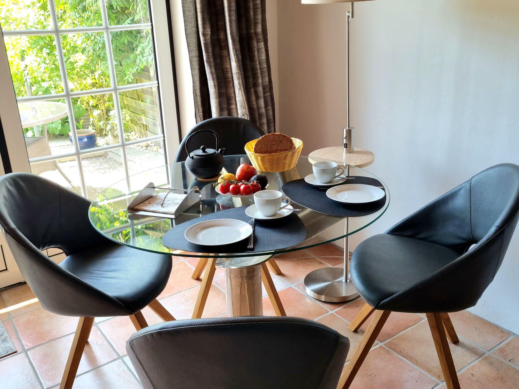 - Essbereich mit Esstisch und bequemen Stühlen, so dass dort mancher Abend beim angeregten Gespräch sein Ende finden wird. Durch die große Fensterfront geniessen Sie einen schönen Blick ins Grüne und die nahezu uneinsehbare mit rd. 24 qm großzügig bemessene Süd-West-Terrasse.