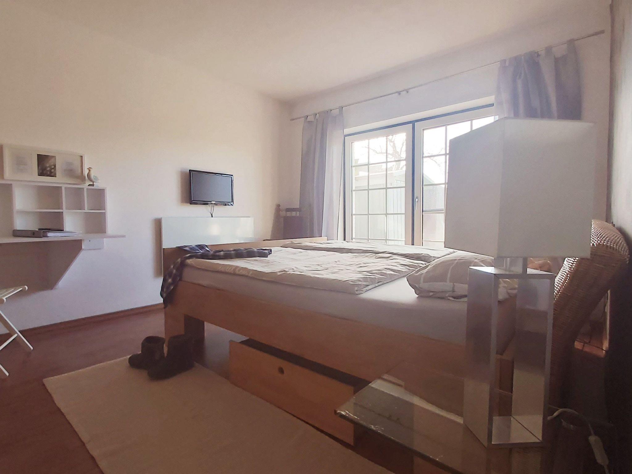 - Vom Schlafzimmer 1 treten Sie morgens direkt auf die Terrasse. Lassen Sie Ruhe und Natur auf sich wirken. Zum geruhsamen Nachtschlaf tragen das 180x200cm große Doppelbett in Komforthöhe und die Abdunkelung durch die Außenjalousie bei. Daneben finden Sie großzügig bemessenen Schrankraum, einen kleiner Arbeitsplatz, Sessel und Stereoanlage vor. Sofern von Ihnen benötigt stehen Ihnen hier auch Bügeleisen, Bügelbrett etc. zur Verfügung!!