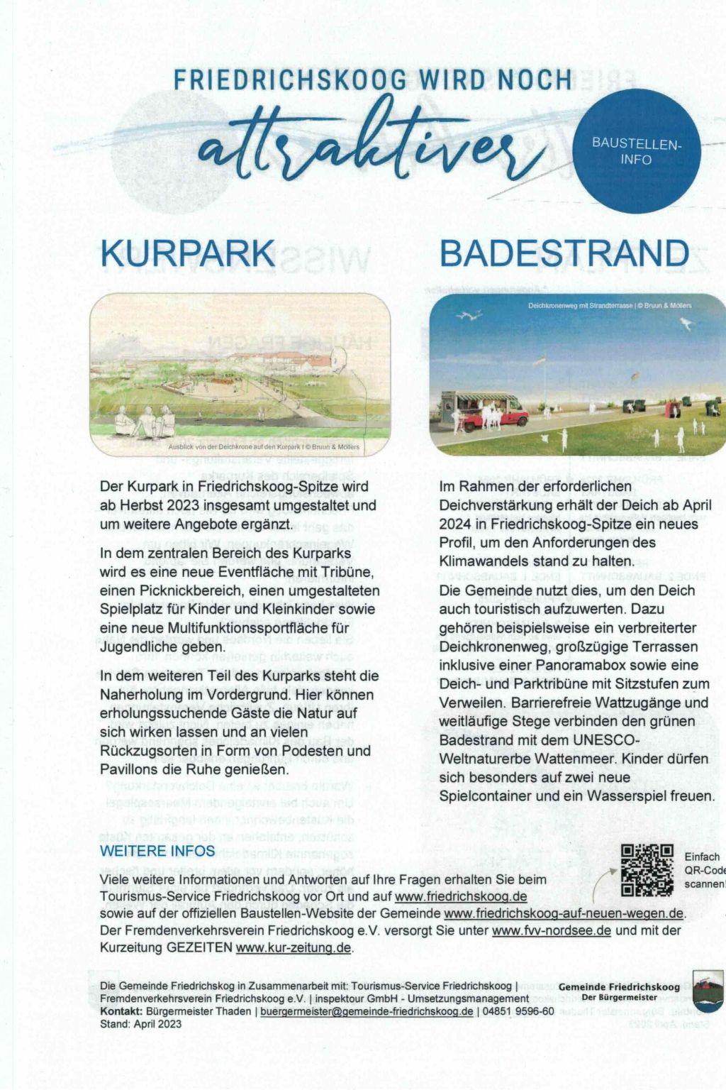 Aktuelle Information zu den Arbeiten im Zusammenhang mit der im Rahmen des Küstenschutzes notwendigen DEICHVERSTÄRKUNG finden Sie auf der website: "Friedrichskoog auf neuen Wegen" oder Sie scannen den QR-Code, den Sie in unserer Fotogalerie finden. Dort ist auch eine kurze Zusammenfassung zu den Maßnahmen zu finden.