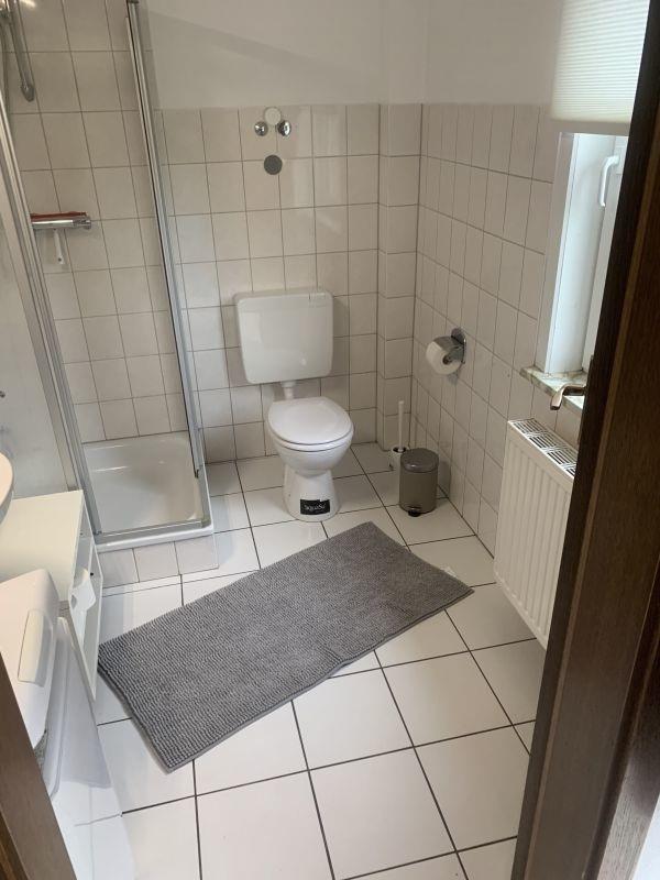 Das Badezimmer mit Dusche ist im Erdgeschoss & über einen kleinen Flur erreichbar (3 Schritte von Wohnungstür).