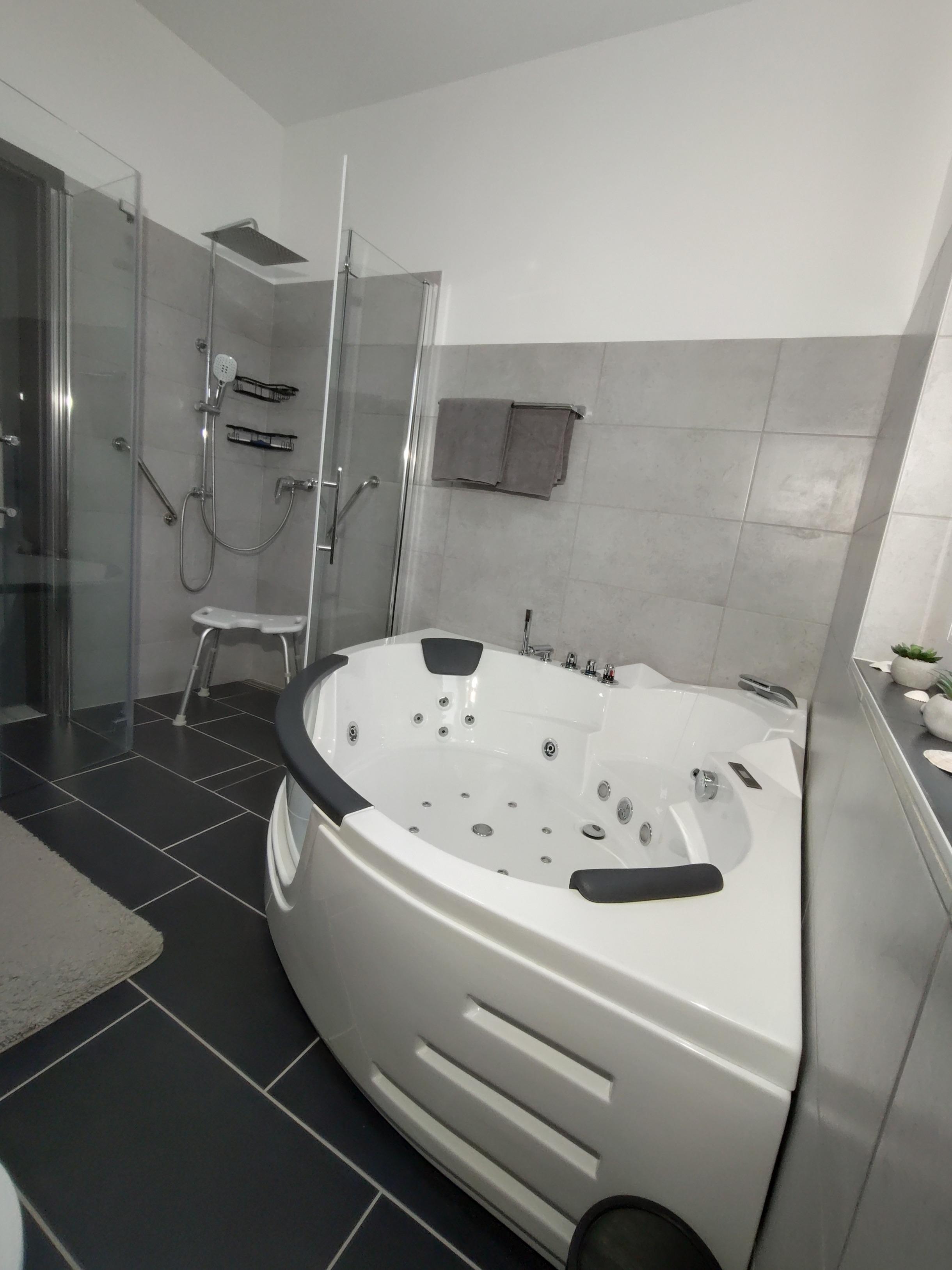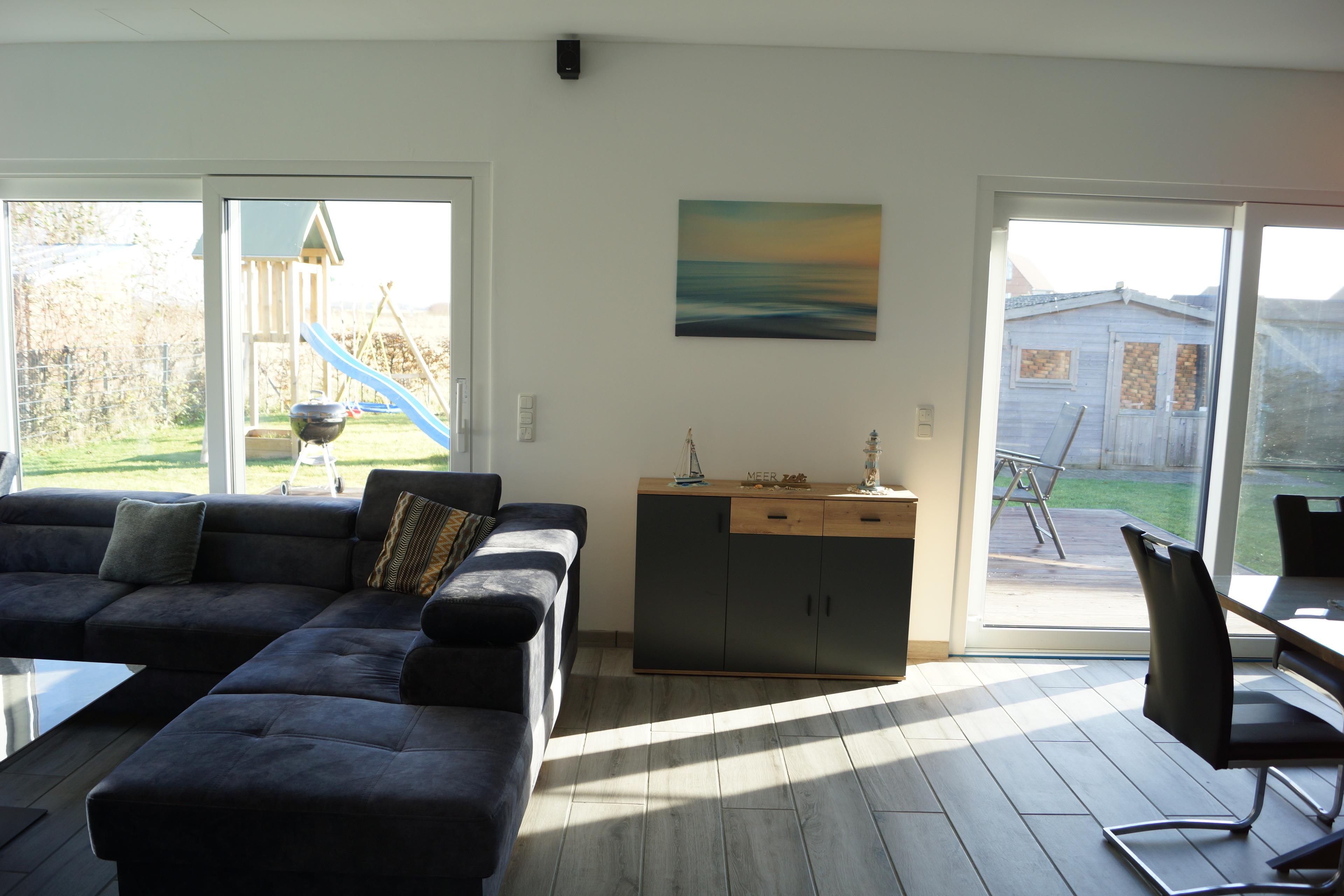 Das komfortable, ebenerdige Ferienhaus wird erstmals zum Saisonbeginn 2026 vermietet und lädt bei sommerlichem Wetter in den 600m² großen, vollständig eingezäunten Garten mit 40m² Holzterrasse ein. Auch bei "nordischem" Wetter bietet das Haus beste Bedingungen für erholsame Urlaubstage. In der großzügigen Sauna oder im beheizten Whirlpool kann man sich nach einem Spaziergang schnell wieder auf den gemütlichen Abend vorbereiten. Die Heimkinoanlage mit 75"-4K-Smart-TV, Blue-Ray Disk-Player und 5.1 Dolby-Surround-System sorgen für angenehme Unterhaltung.