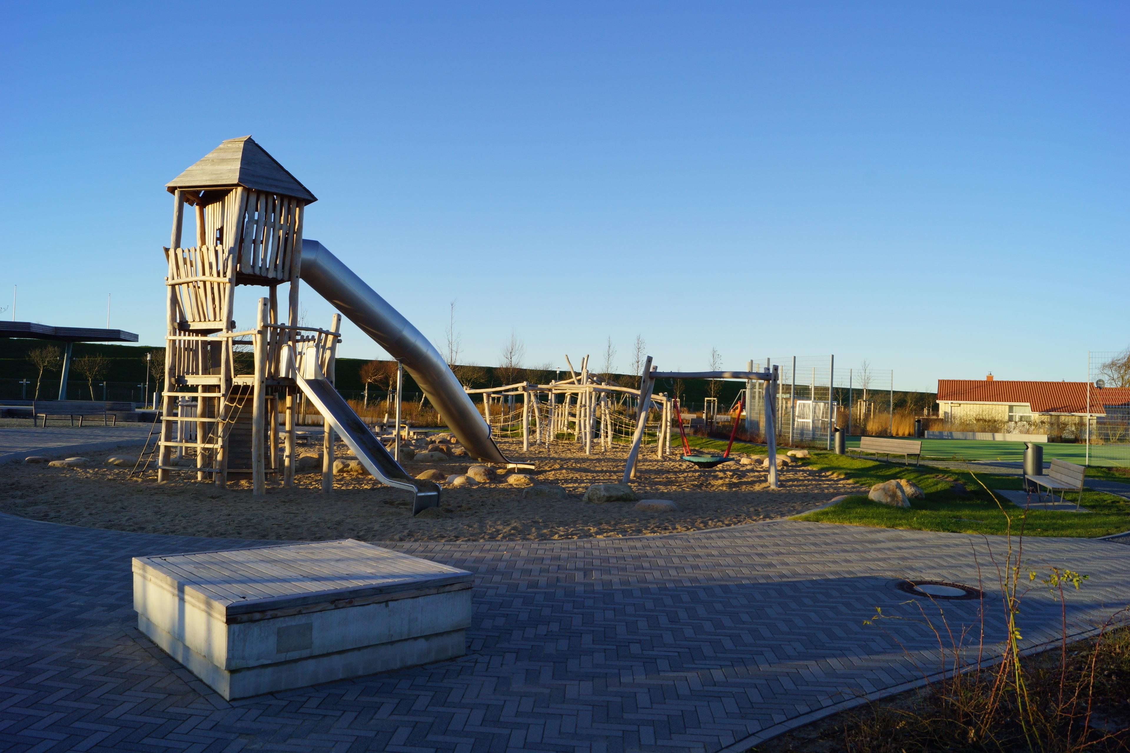 Kinder dürfen sich auf die Spiel- und Schaukelanlage mit Rutsche und Kletterturm, den Sandkasten und die eigene Sitzgarnitur freuen. Einfahrt und Zuwegung sind mit verschließbaren Toren zur Straße versehen, so dass Hunde unbesorgt auf dem Grundstück umherlaufen können.