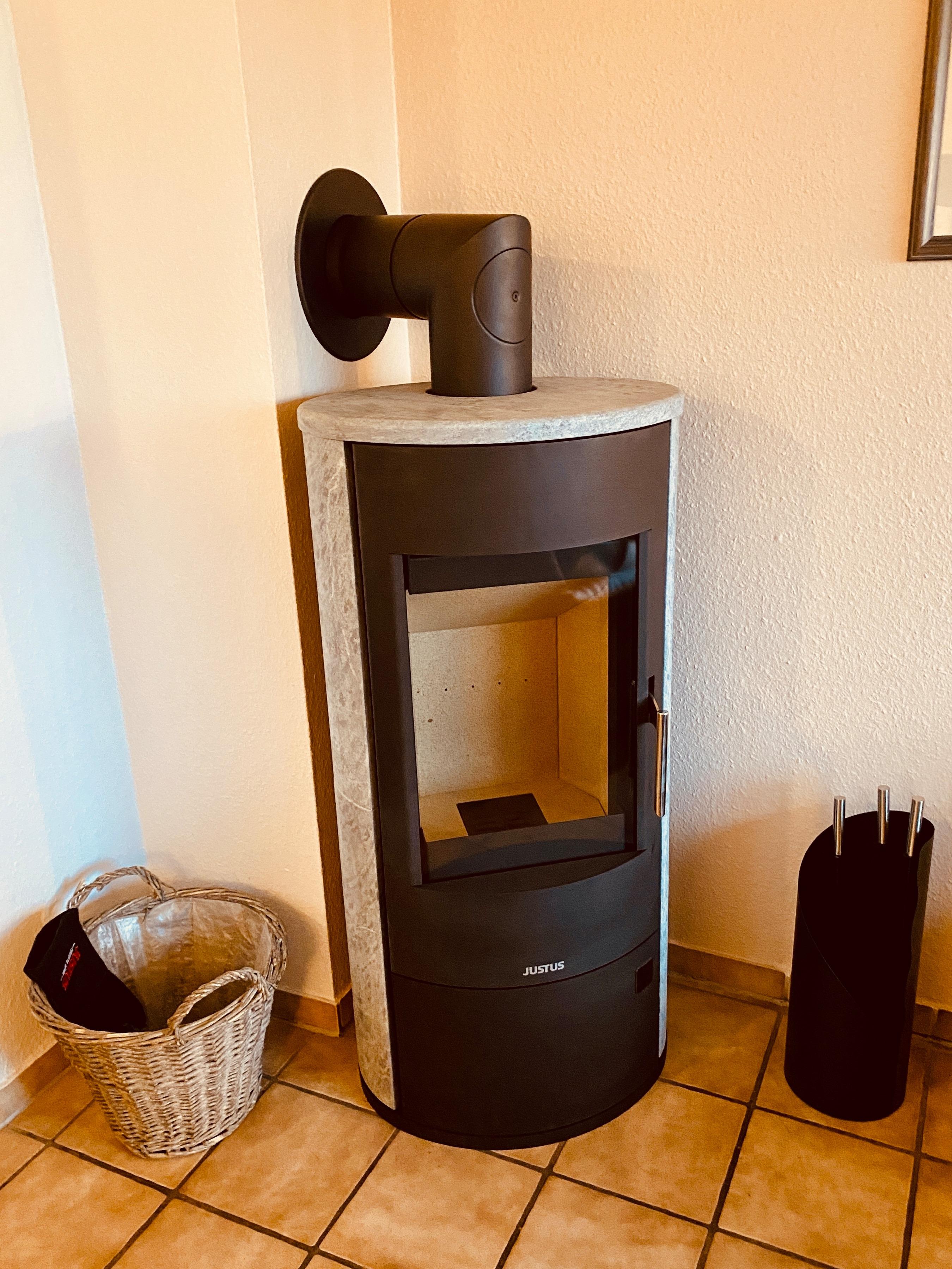 Im Wohnbereich steht ein Kaminofen zur Verfügung, den Sie durch mitgebrachtes Brennholz oder Holzbriketts (auch beim REWE erhältlich) betreiben können.