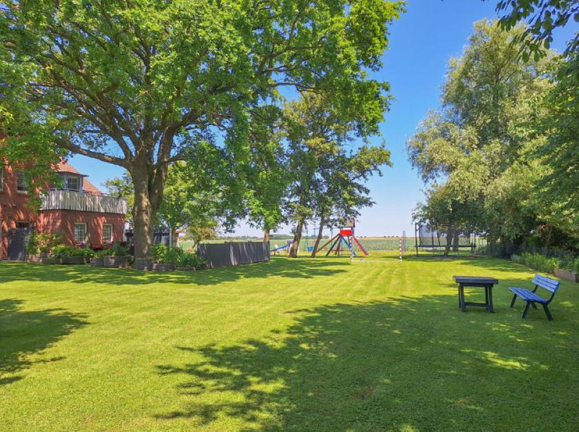 Auf dem riesigen Grundstück mit Liegewiese und vielen Sitzmöglichkeiten befindet sich auch eine zusätzliche Grillterrasse mit Grill.