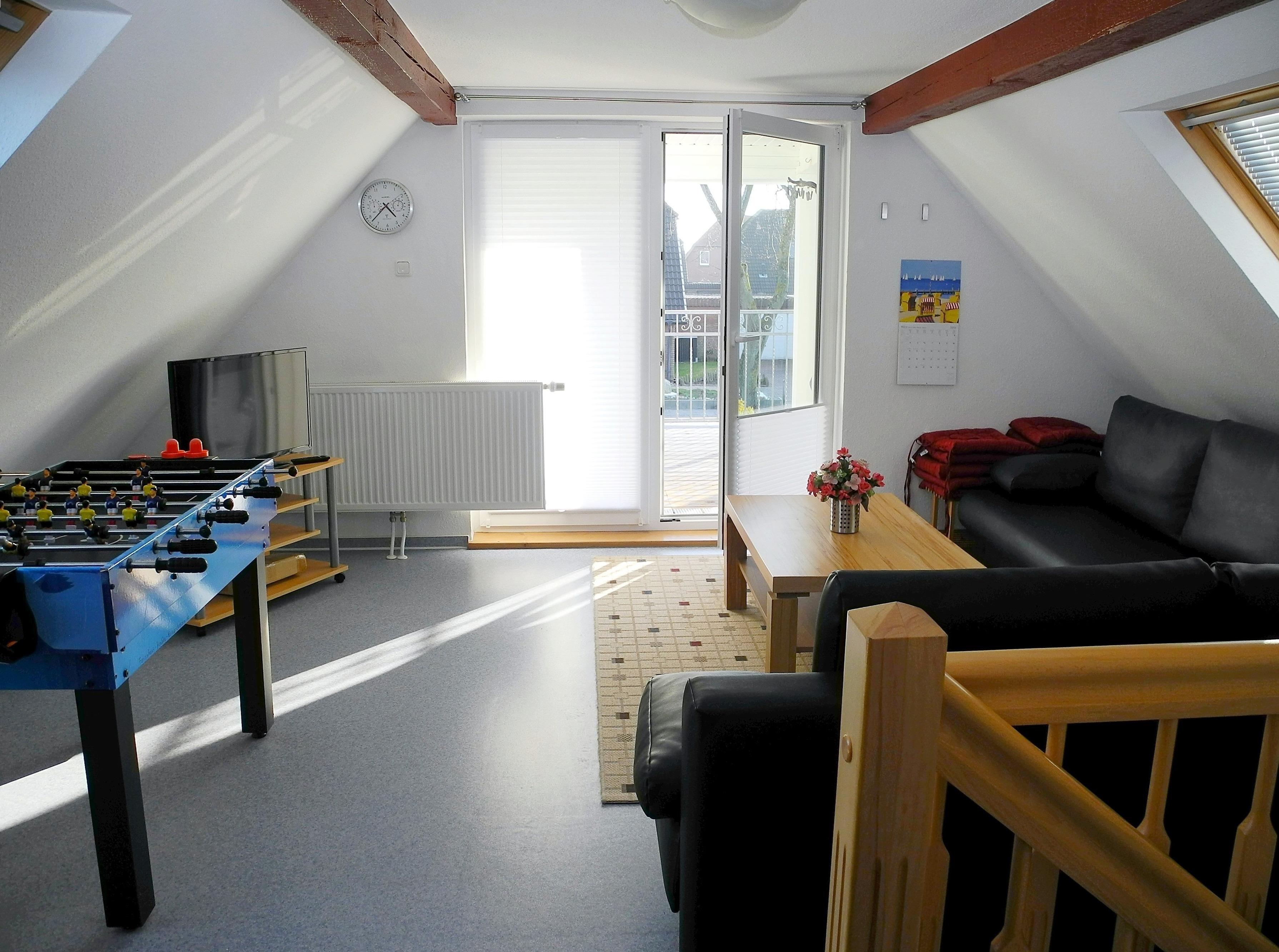 In 3 Schlafzimmern (SZ), einem Licht durchfluteten Mehrzweckraum (MZ) finden bis 8 Personen Platz. Die Familie trifft sich im einladenden Wohnzimmer mit offener Küche und Essecke. Die Sonne genießen Sie im geräumigen Garten (Süden/Osten) oder auf der Loggia/ Terrasse (nach Süden). Der besondere Reiz vom Ferienhaus Krabbe Friedrichskoog aber liegt in dem großen Balkon (nach Süden), von dem aus man über die Häuser bis zum nahen Deich schauen kann.