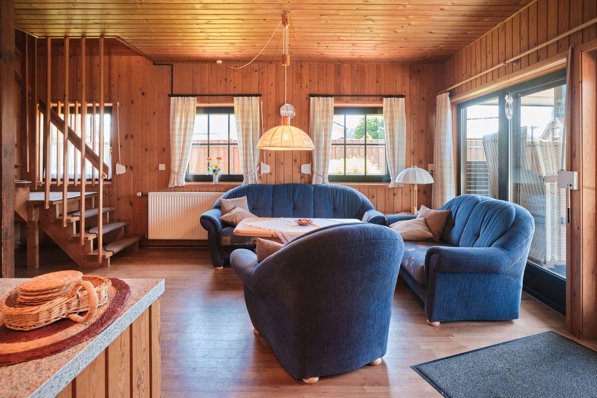 Bis zu 6 Personen können in diesem Feriendomizil über 2 Ebenen einen herrlichen Urlaub verbringen. Vom Wohnzimmer aus haben Sie direkten Zugang zur Terrasse und zu einem komplett eingezäunten Garten für Hunde.