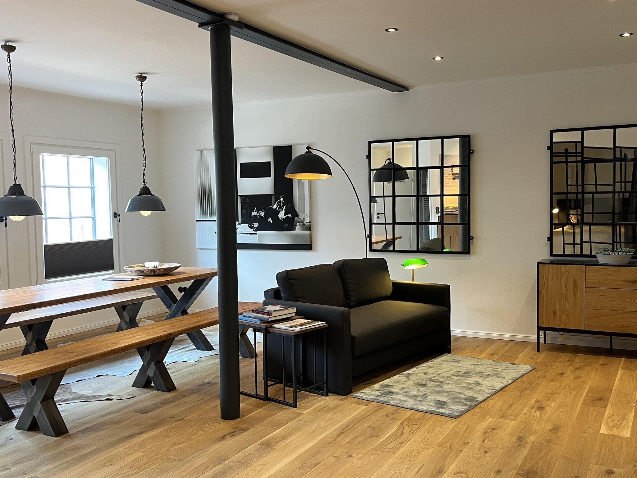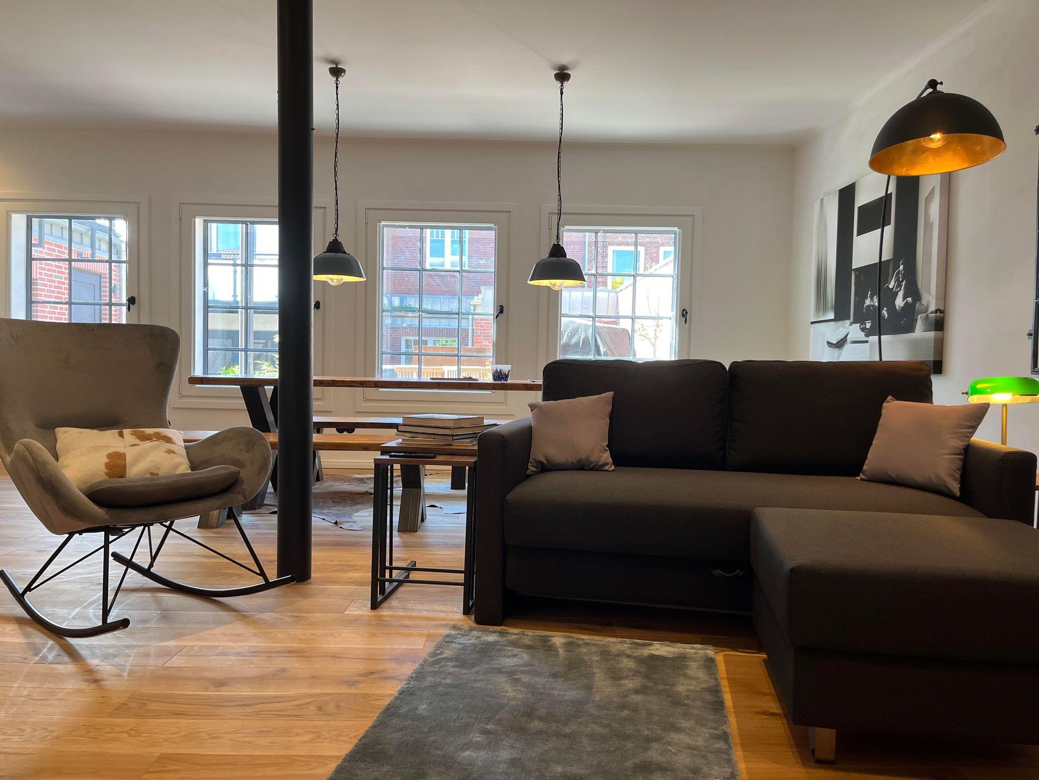 Modernes Loft an der Gracht in Friedrichstadt mit Terrasse und voll ausgestatteter Küche.