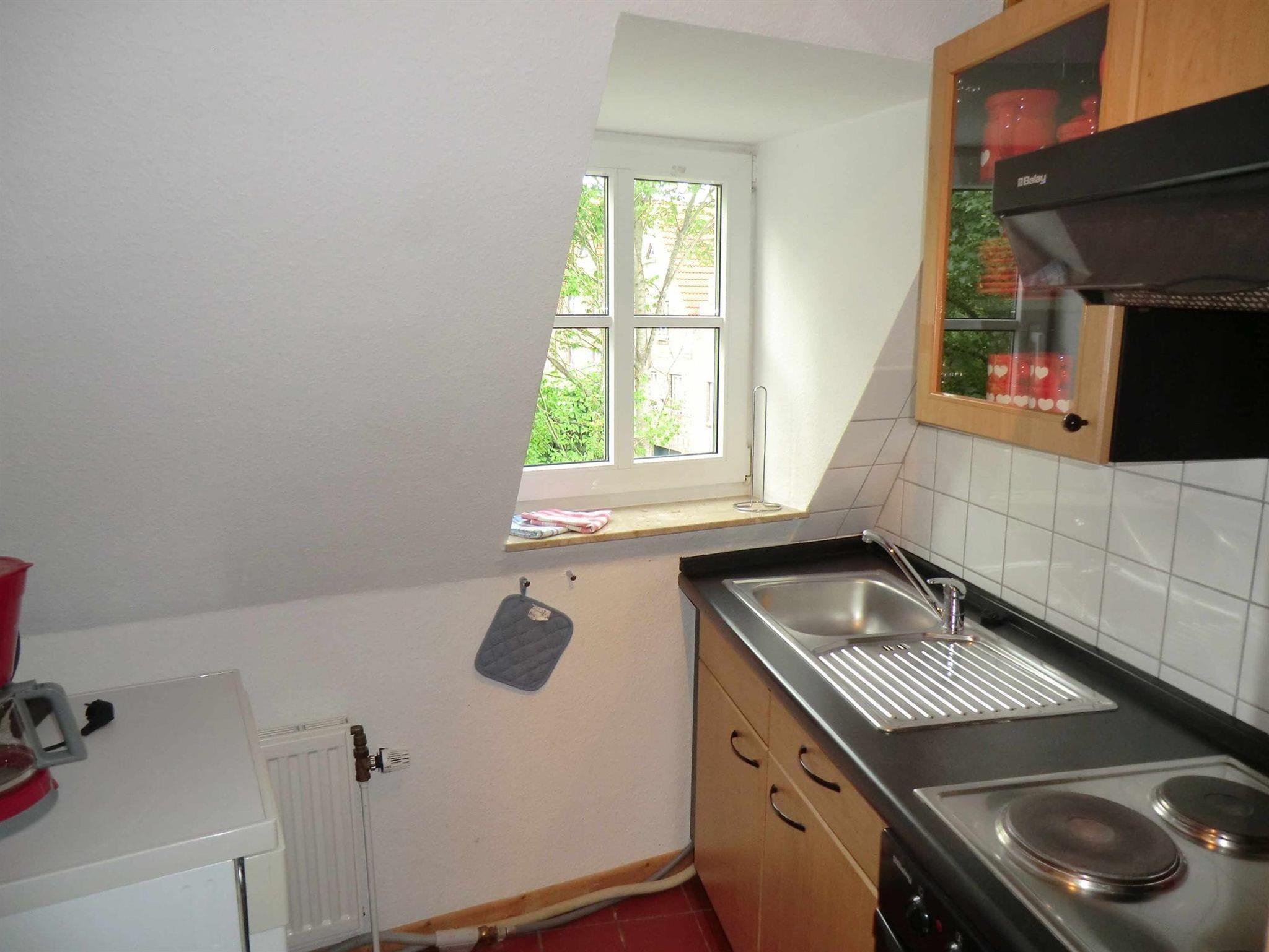 Sie hat eine abgeschlossene Küche mit Einbauküche und einen mit einem Tisch und 2 Stühlen möblierten Südbalkon.