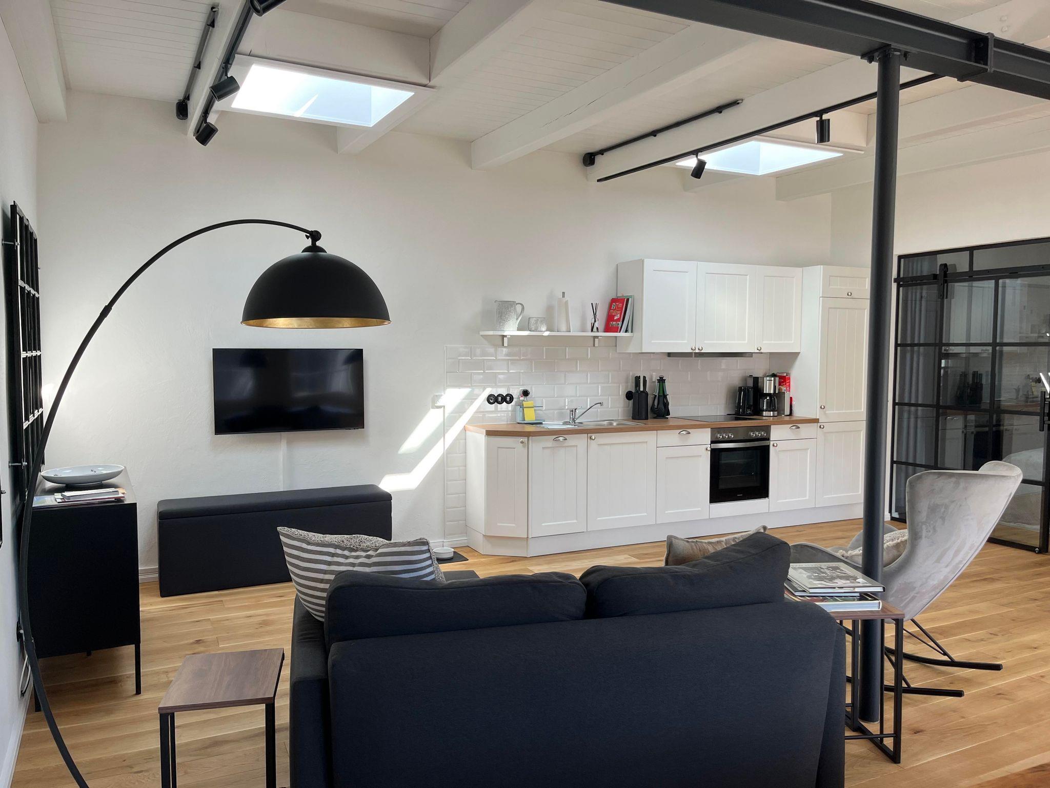 Modernes Loft mit Sonnenterrasse und Blick auf die Gracht in Friedrichstadt.