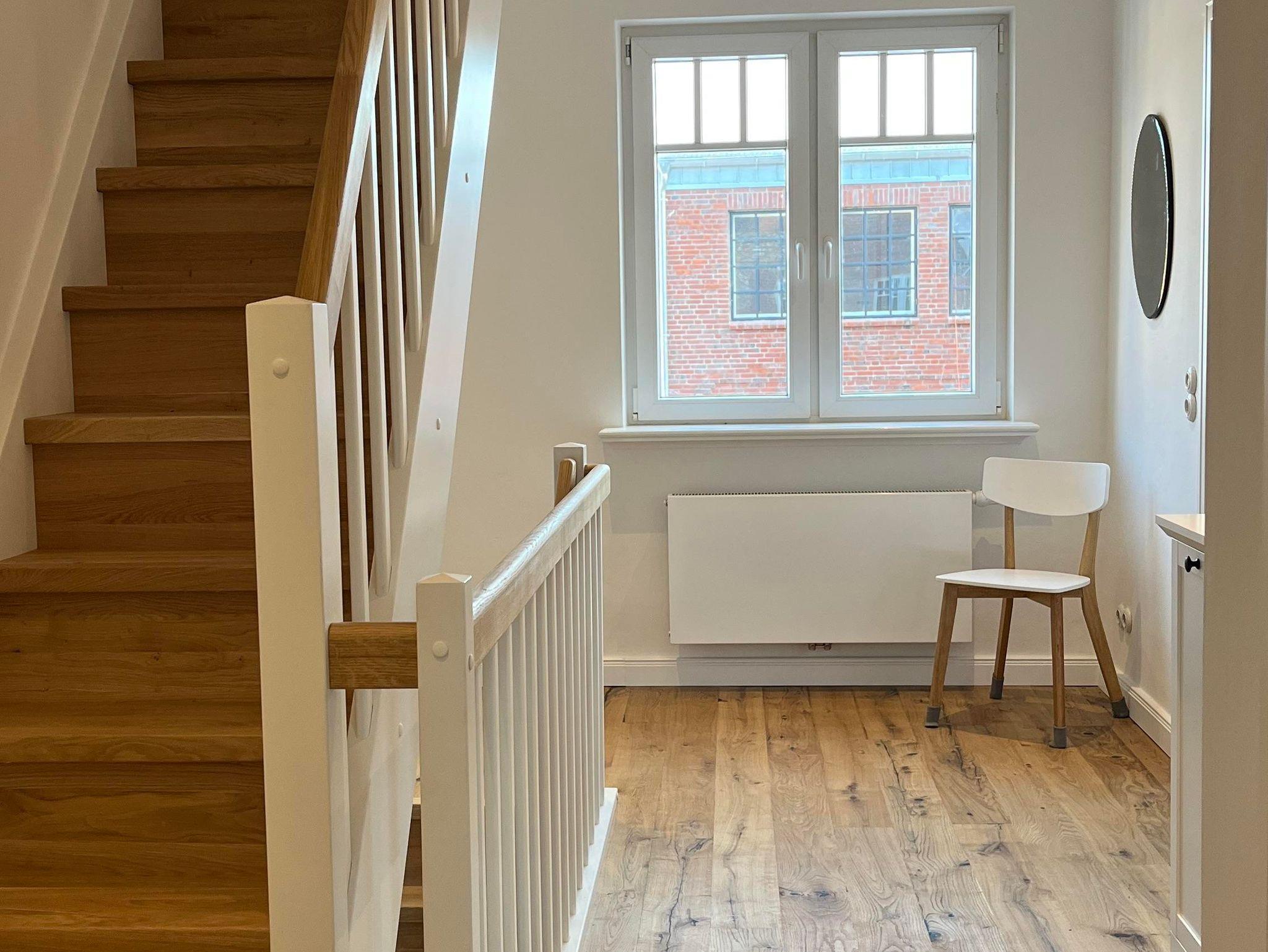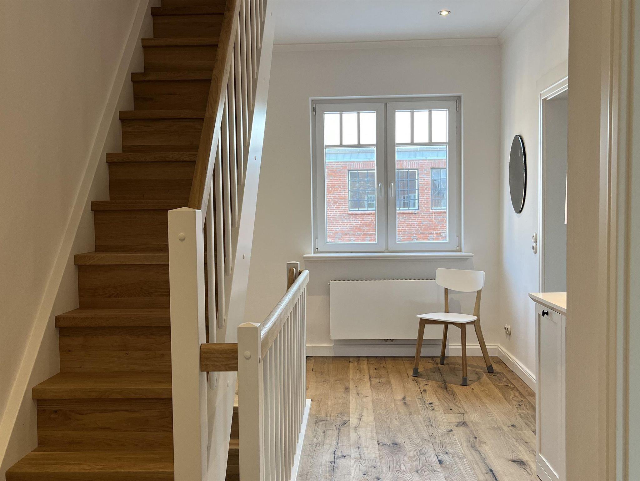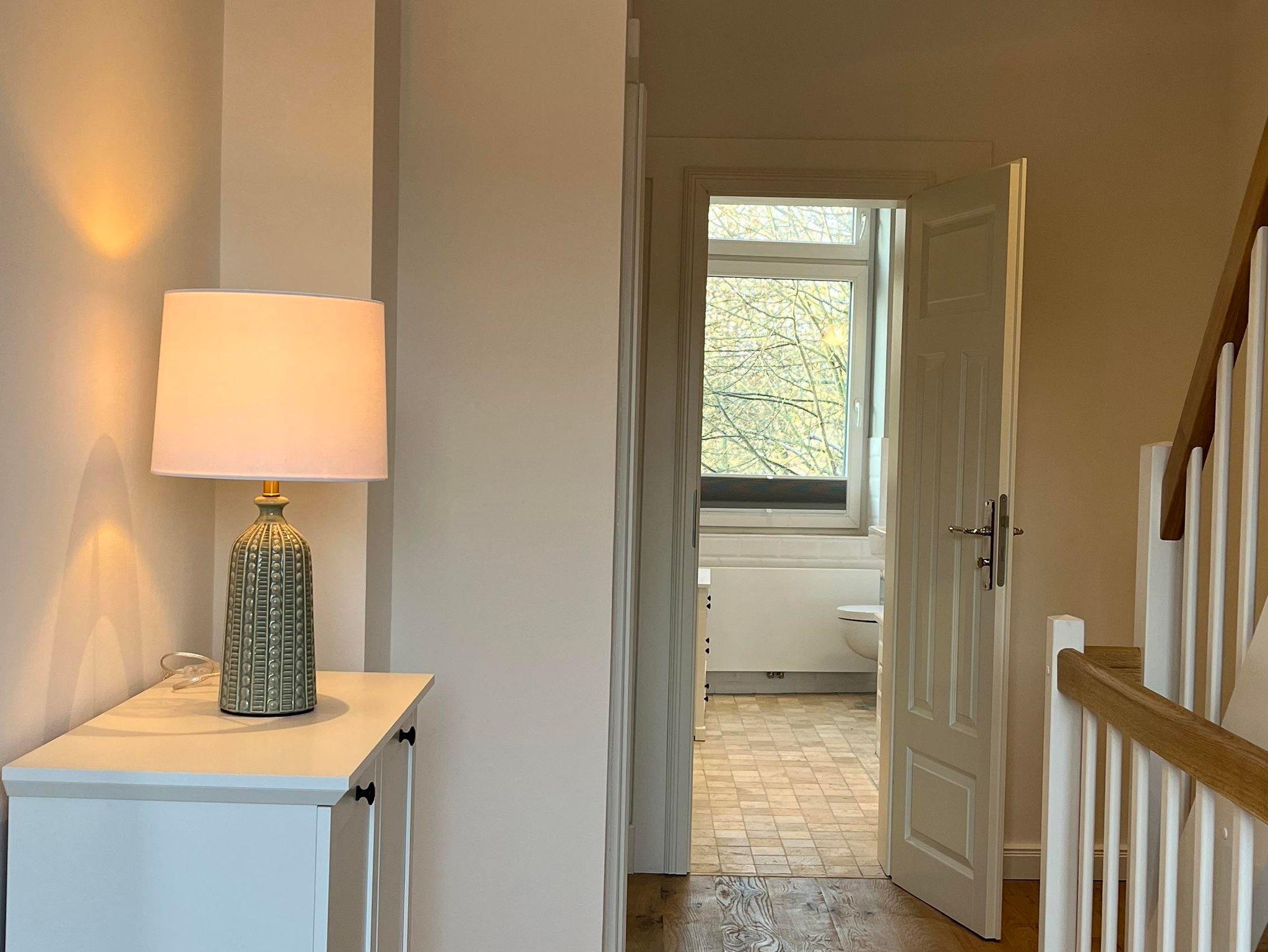 Das Grachtenhaus verfügt über zwei sehr schöne Schlafzimmer für je zwei Personen im ersten Stock und ein ausziehbares hochwertiges, ausziehbares Schlafsofa im Wohnzimmer im Erdgeschoss. Die Küche hat eine Spülmaschine, Kühlschrank mit Eisfach und eine große Ausstattung von allem was das Herz begehrt, wenn man einen längeren Urlaub plant und gerne kocht. Es gibt zwei Badezimmer – ein größeres Badezimmer im ersten Stock mit Dusche/Badewanne und ein Duschbad/Gästebad im Erdgeschoss. Im 2. Stock gibt es einen Yogaraum, der gegen Absprache gegen Aufpreis dazugebucht werden kann. Für größere Gruppen sind ebenso die beiden Loftwohnungen (pro Apartment max. 3 Personen) dazubuchbar. Abstellmöglichkeit für Fahrräder ist vorhanden.