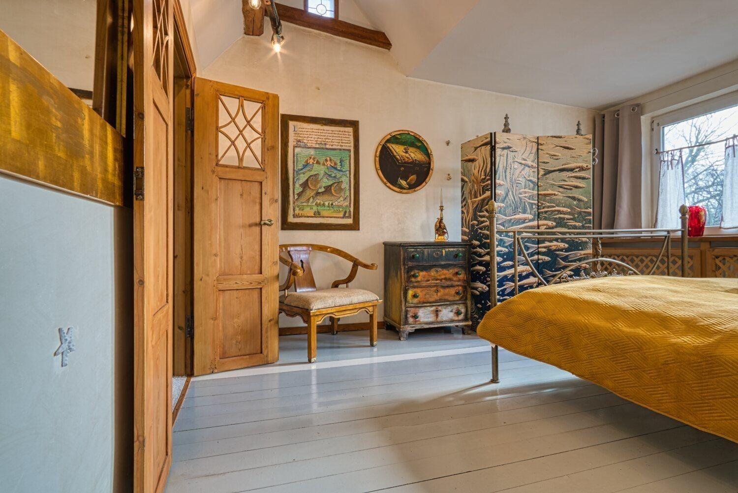 Dieses lichtdurchflutete Häuschen aus dem Jahre 1698 besticht durch seine originalen antiken Bauelemente: Terrazzoboden, teils historische Dielen, offenes Gebälk und Backsteine. Die Küche, - die eine handgearbeitete Tischlerarbeit ist -, Kassettentüren, Landhausdielen, eine Doppeltür und Stühle aus einer Kirche, Marmorputz im Schlafzimmer und ausgesuchte Möbel unterstreichen den Charme des Kleinods.