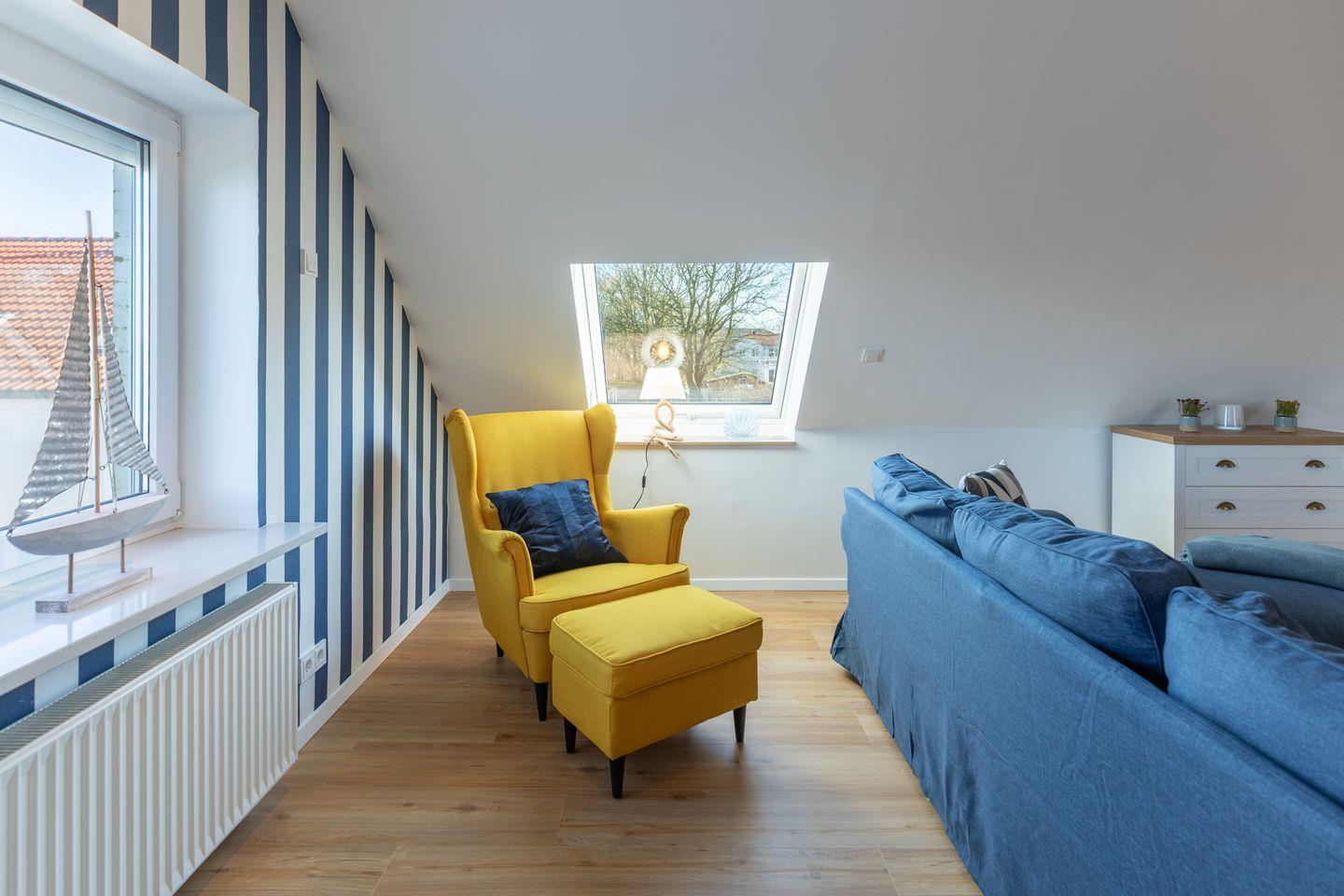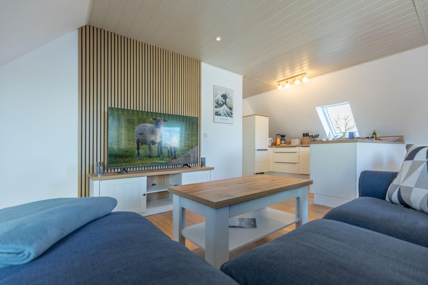 Die Wohnung empfängt Sie mit einer hellen und einladenden Atmosphäre. Der großzügige Wohnbereich verfügt über eine gemütliche Sofaecke, die ideal zum Entspannen ist. Hier können Sie die Abende in angenehmer Runde verbringen – sei es mit einem guten Buch oder einem Film auf dem TV.