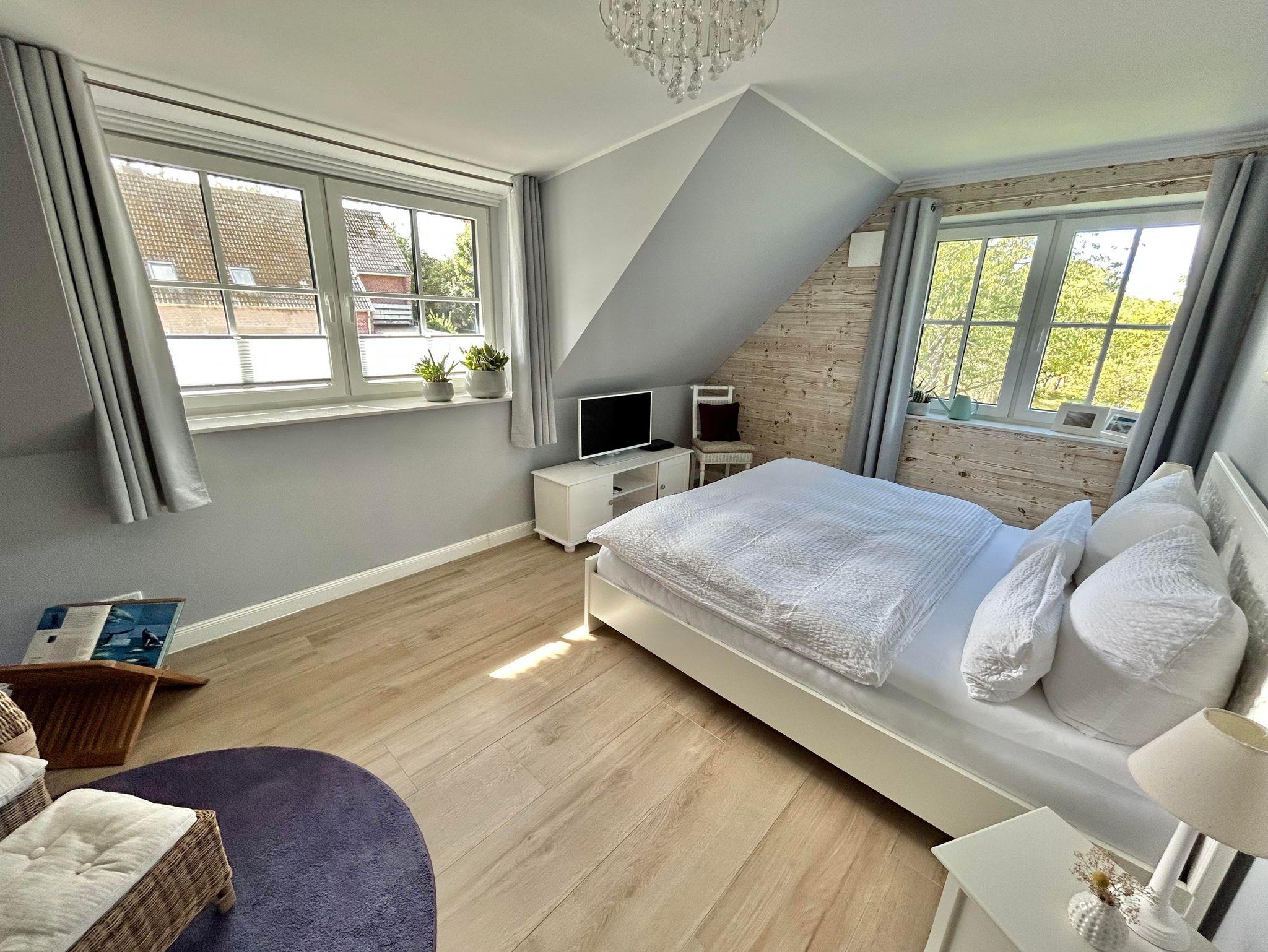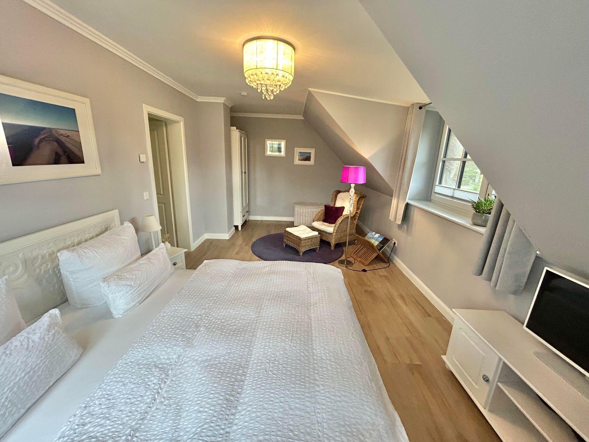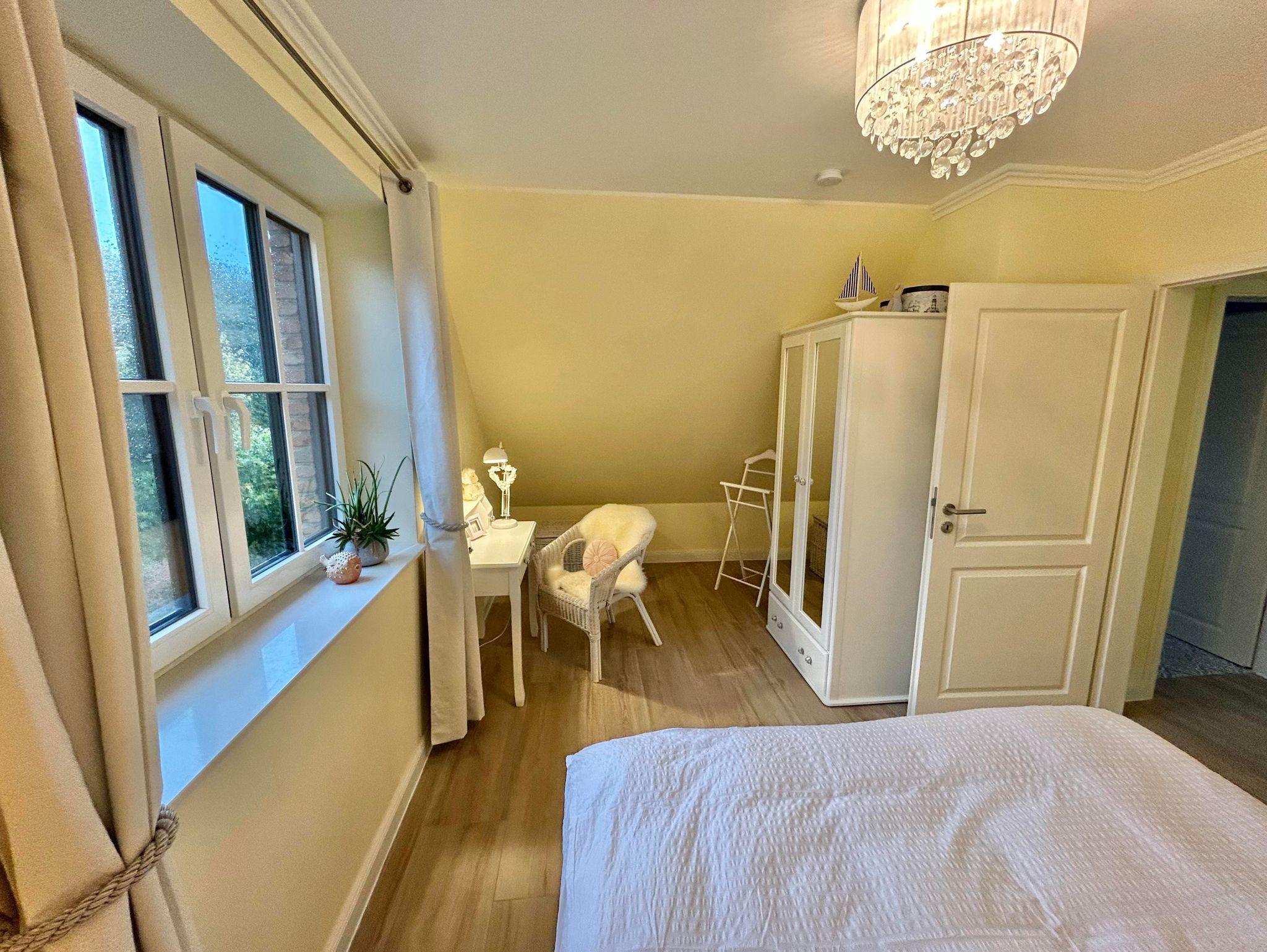 2 großzügige Schlafzimmer mit Doppelbetten ( 180x200cm und 160x200cm ), Kleiderschränken und einem zusätzlichen Magenta-TV sowie verfügen die Zimmer über einen Sekretär und eine Leseecke mit einen Rattanohrensessel.