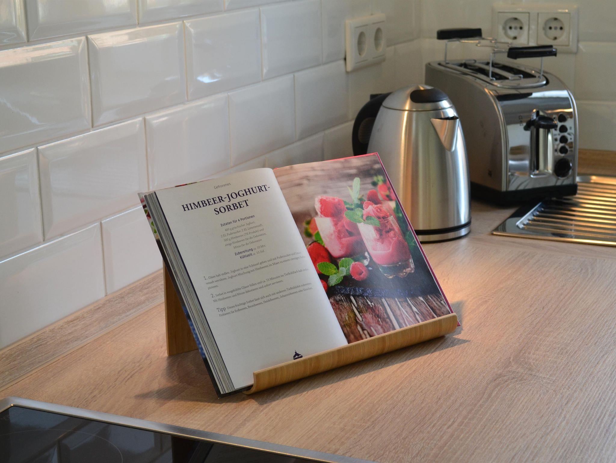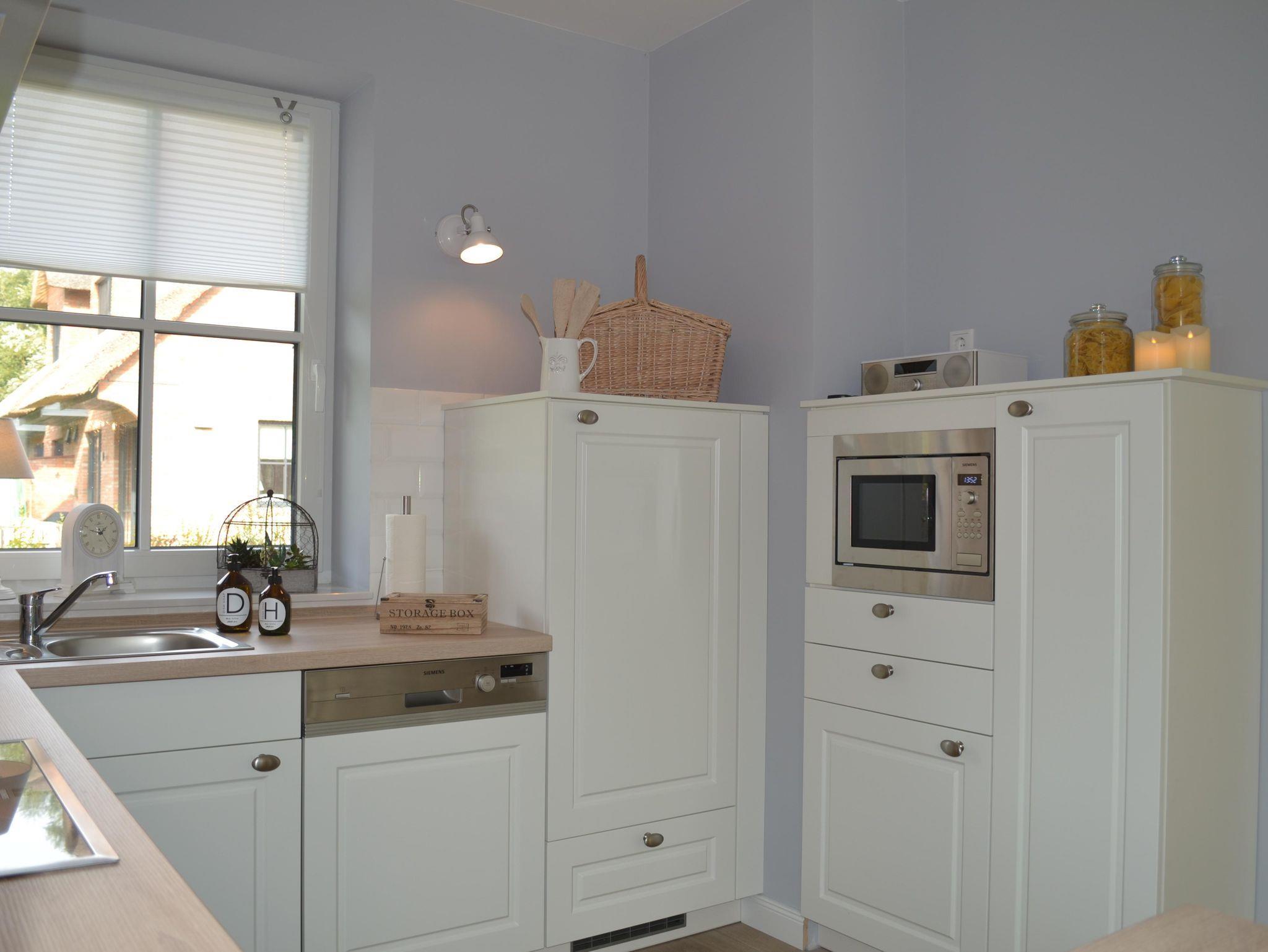 Waschmaschine, Cerankochfeld, Backofen, Mikrowelle, Kühlschrank mit Gefrierfach, Kaffeemaschine, Siebträgermaschiene, elektrischem Milchaufschäumer, Toaster und Wasserkocher.