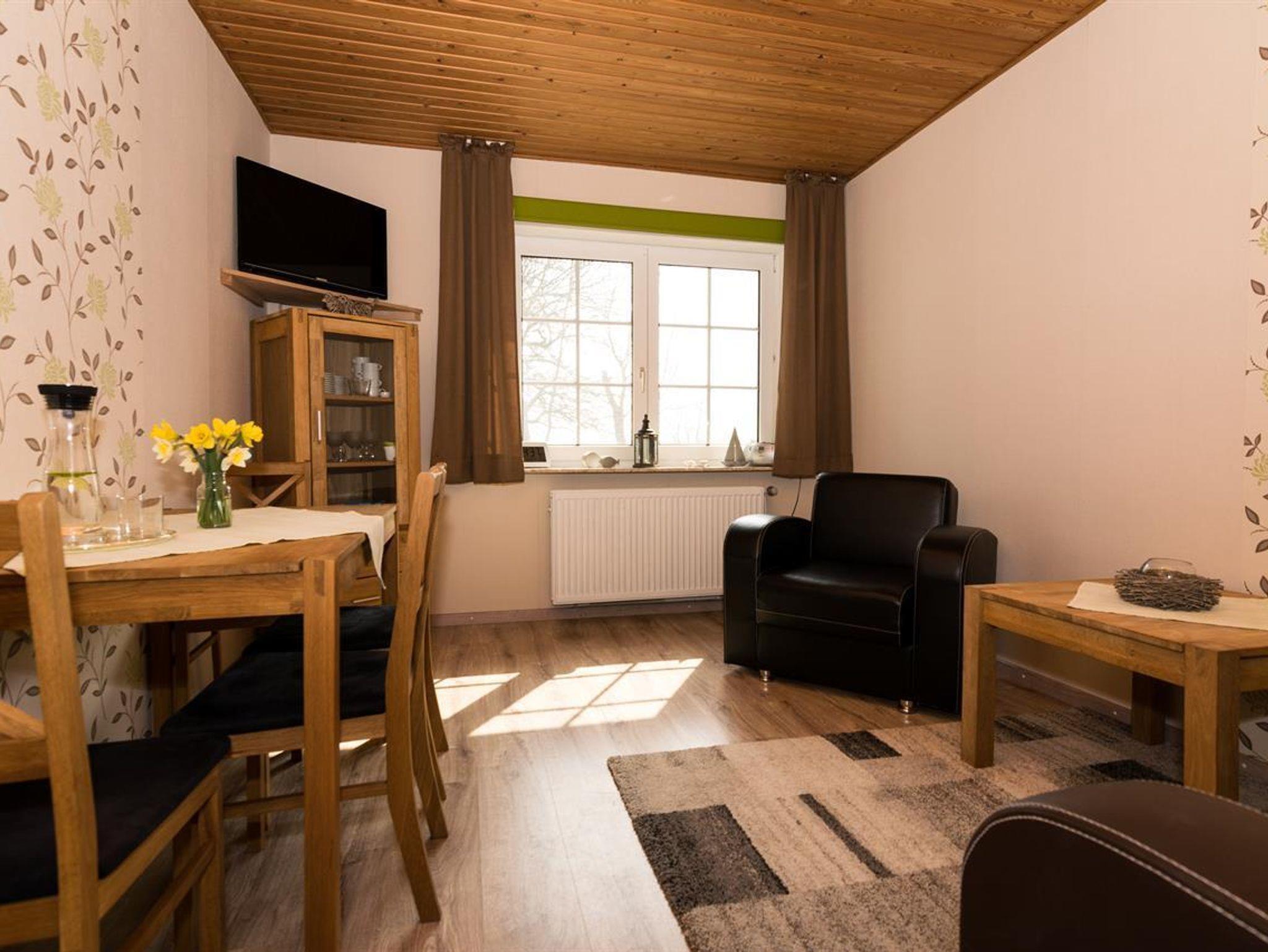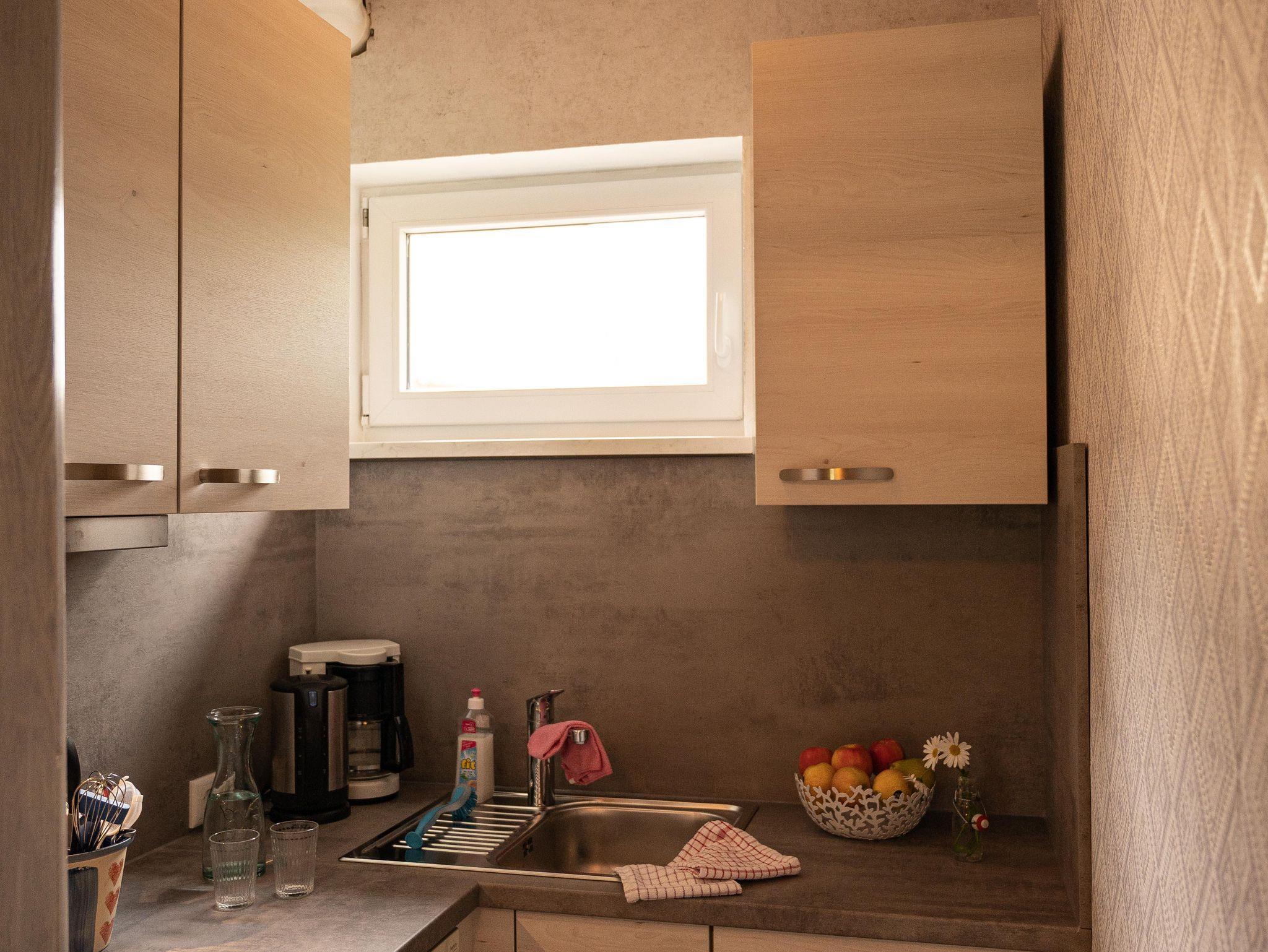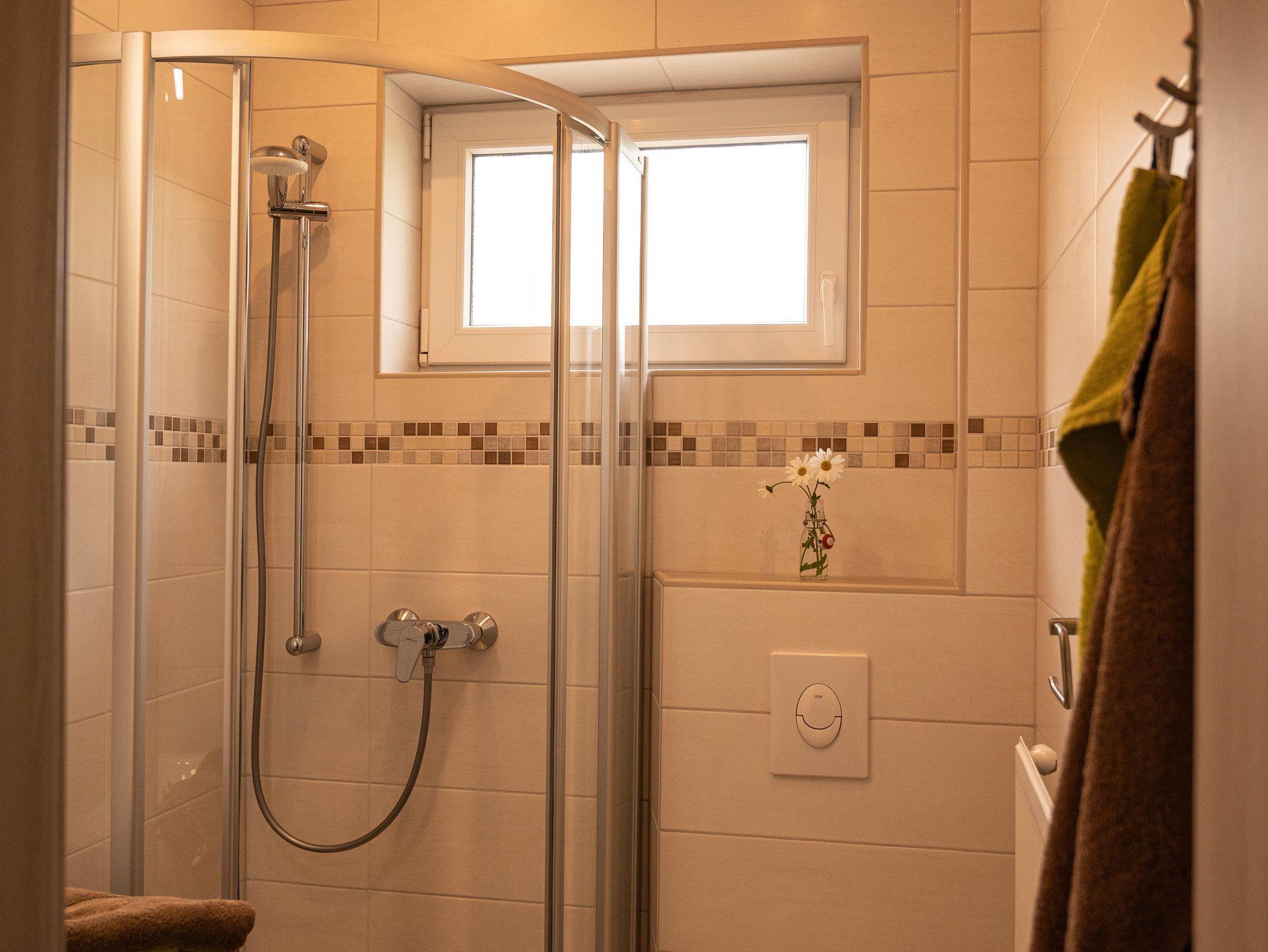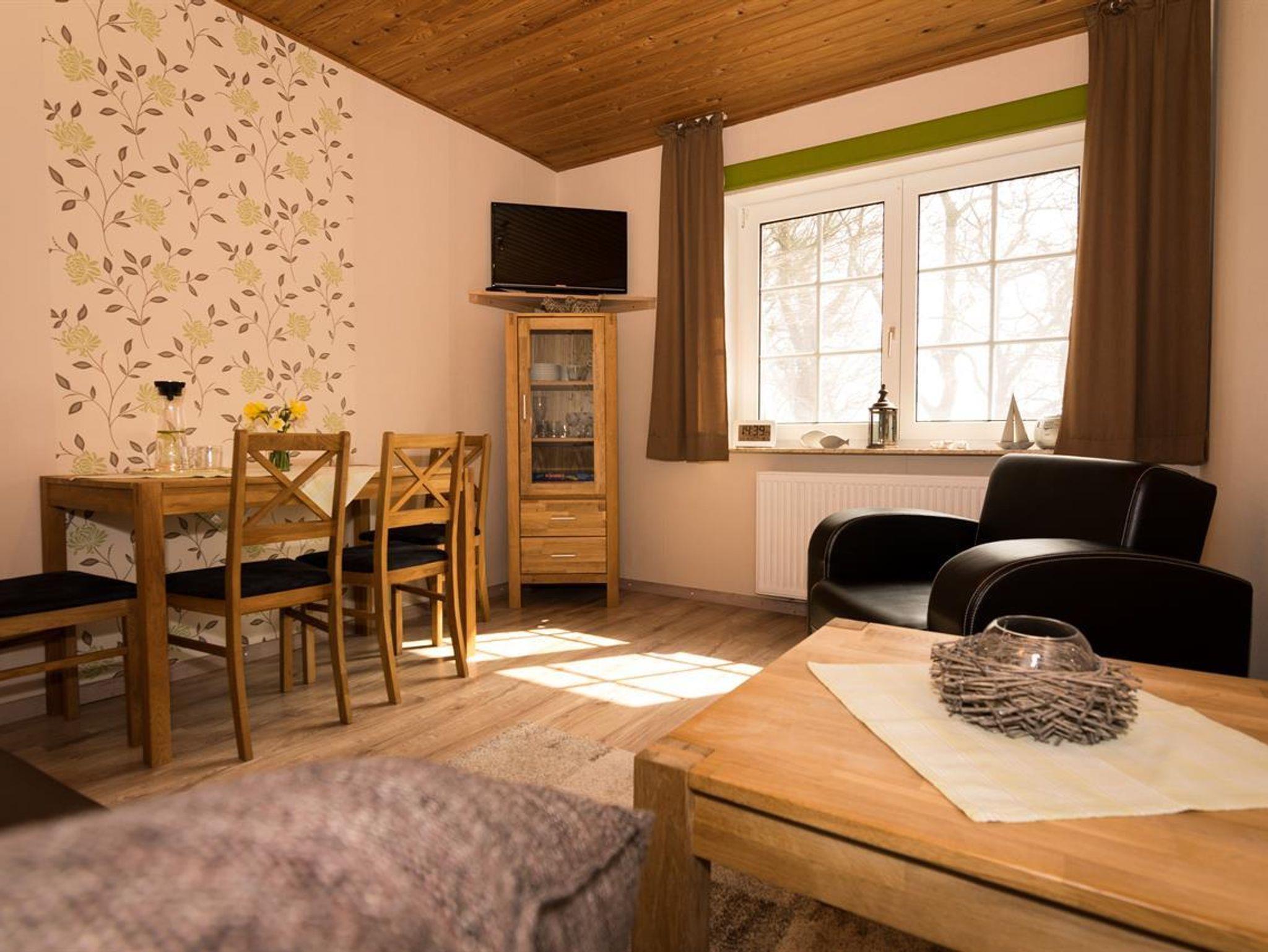 In unserer Ferienwohnung mit separatem Eingang finden Sie auf 50qm zwei Schlafräume (1x Doppelbett, 1x Etagenbett), ein Duschbad mit Fenster, eine voll ausgestattete Küche mit Geschirrspüler und Mikrowelle, sowie einen Wohn-Essraum.