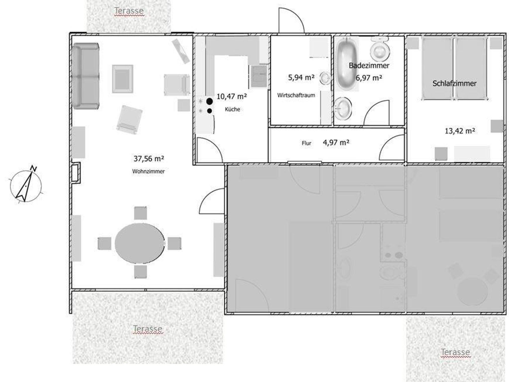 Ein großer Garten (ca. 1000 qm) mit Terrassen und Sitzmöglichkeiten bieten Erholung und Entspannung.