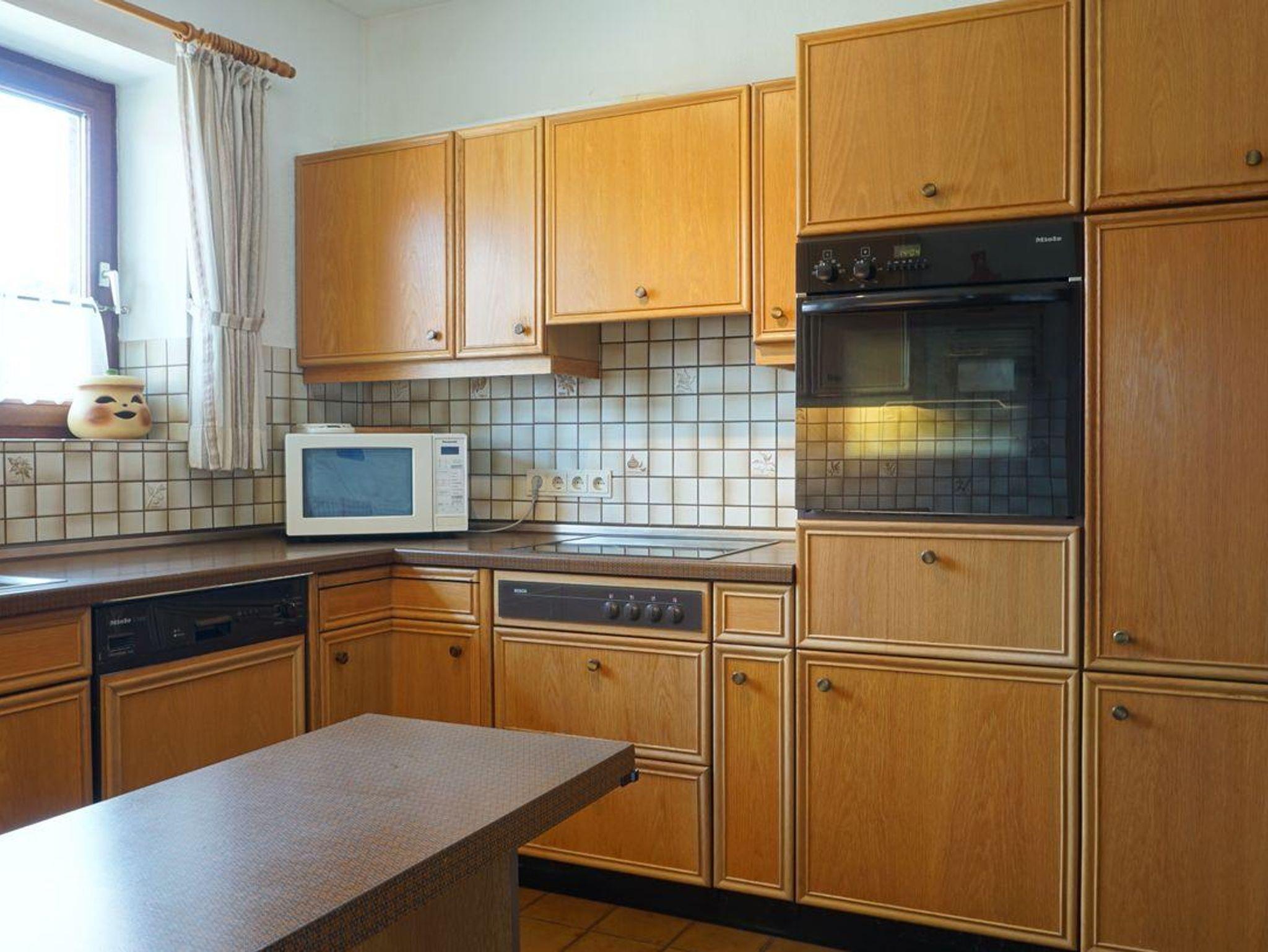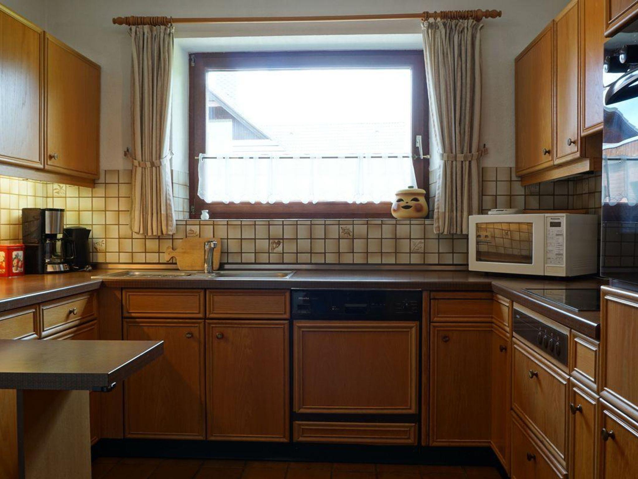 Die voll ausgestattete Küche lässt keine Wünsche offen und beinhaltet einen Backofen, ein Cerankochfeld, einen Geschirrspüler, eine Mikrowelle, einen Kühlschrank und eine Kaffeemaschine.