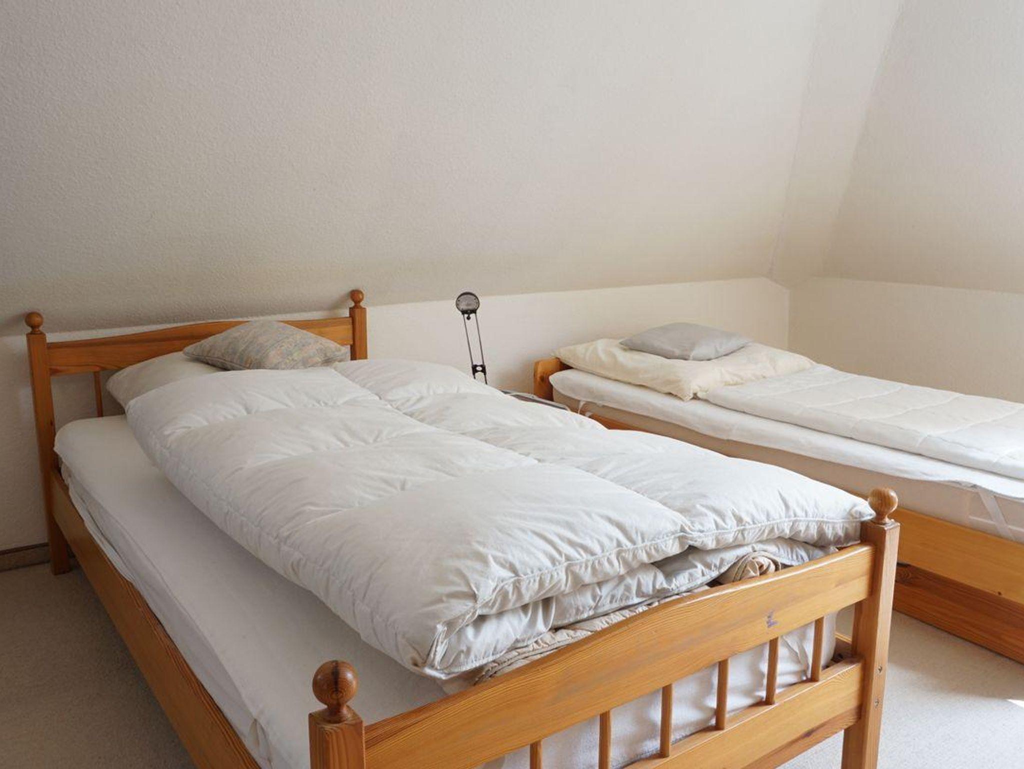 Das Haus verfügt über zwei Schlafzimmer mit Doppelbetten und ein Schlafzimmer mit zwei Einzelbetten sowie einem Schreibtisch. Ein modernes Duschbad und ein Vollbad bieten Komfort für alle Gäste sowie nochmal ein Gäste WC.