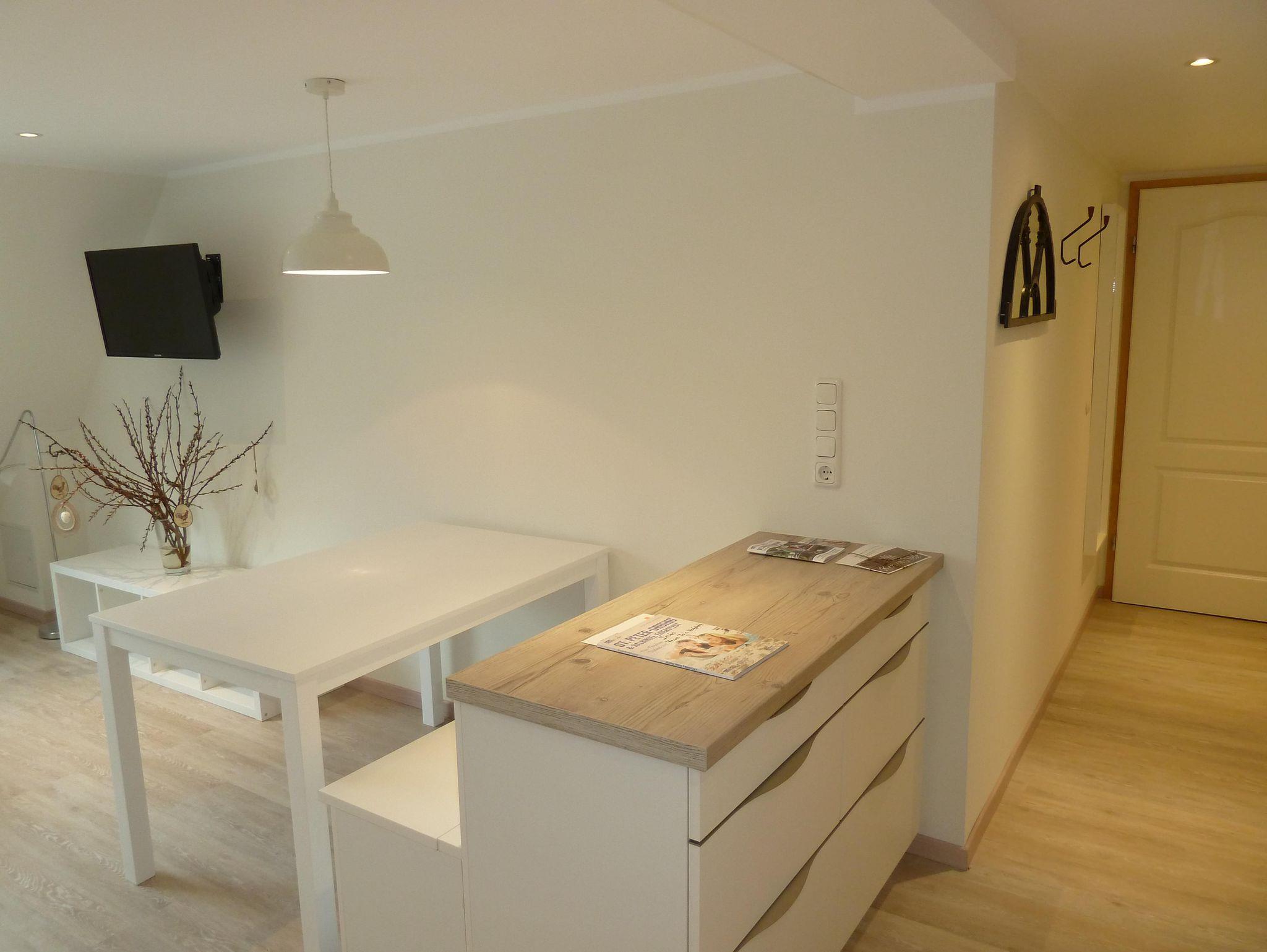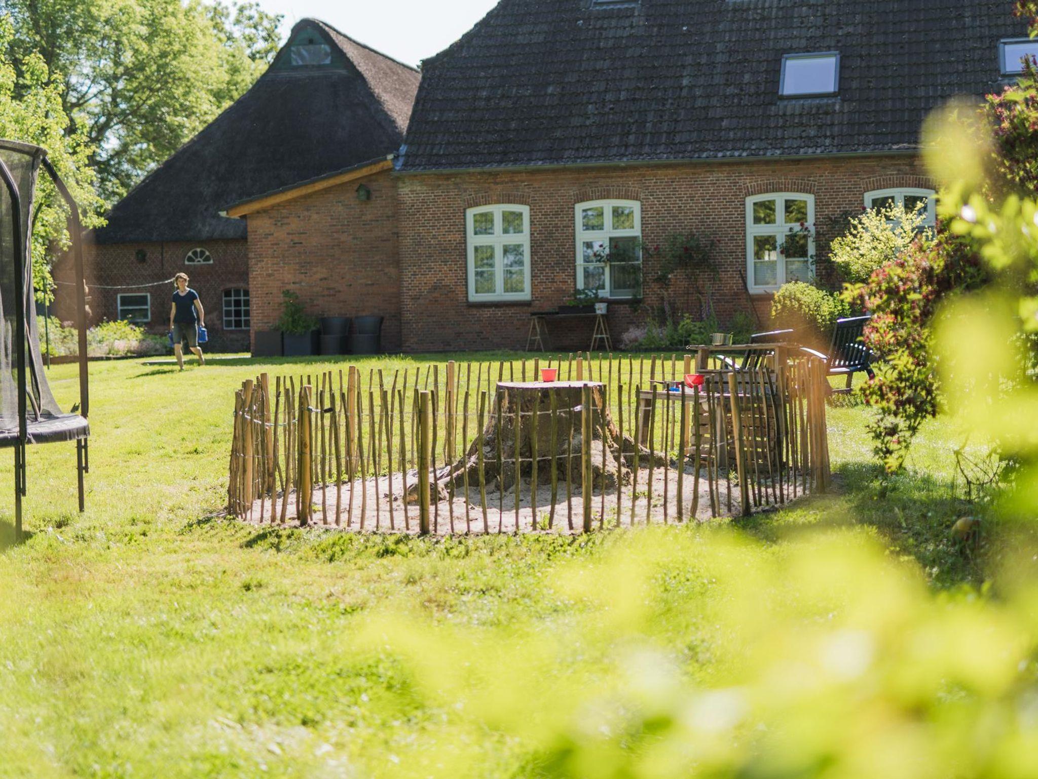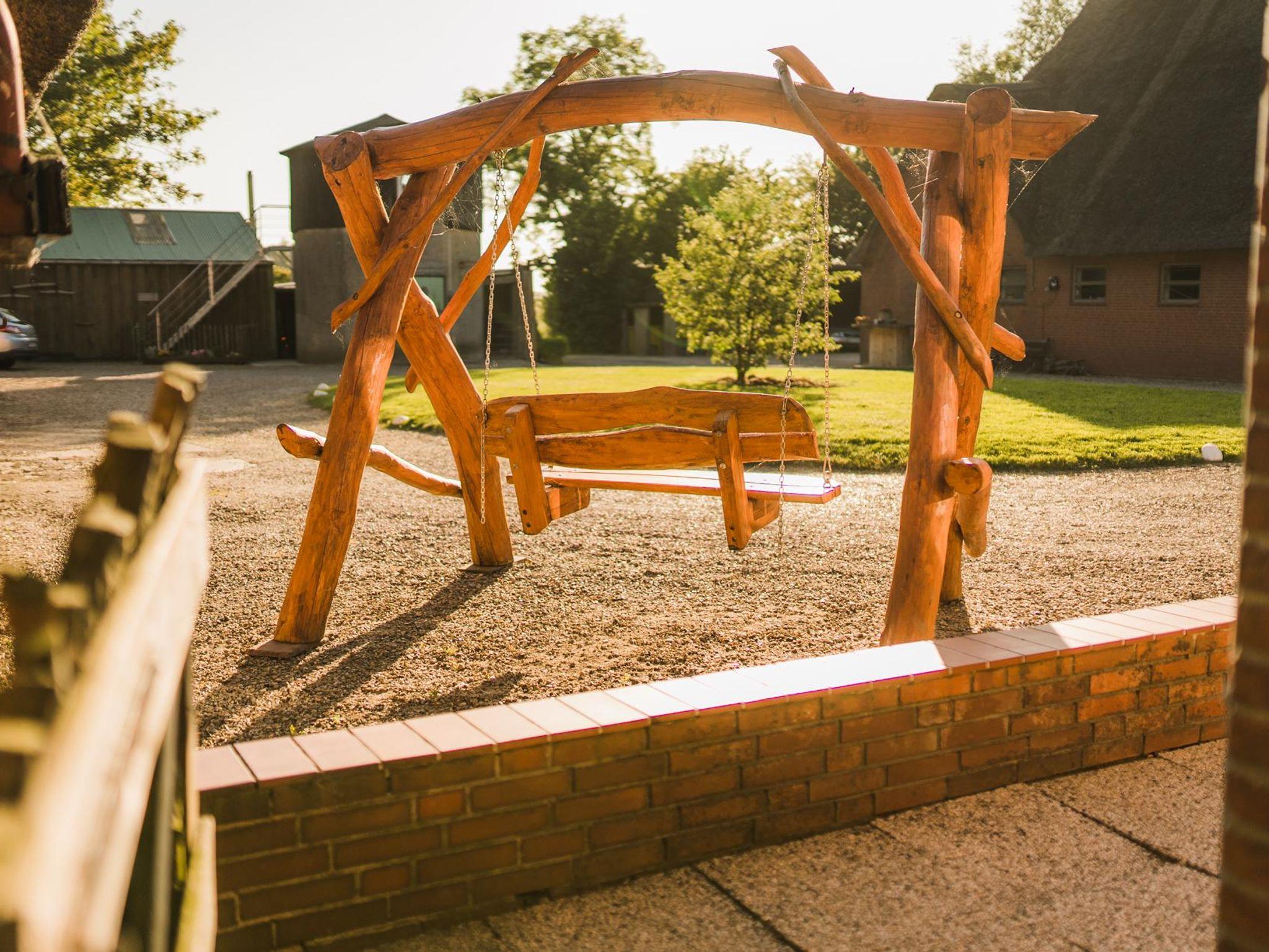Die Ferienwohnung „To'n Hofplatz“ befindet sich im 1. OG des Bauernhauses. Von dort hat man einen prima „Blick in den Hofplatz“ – daher der Name. Sie besteht aus einem Eingangsbereich mit Garderobe, Koch- und Wohnkombination (Herd mit Backofen, Kühlschrank mit Gefrierfach, Toaster, Kaffeemaschine, Wasserkocher), dem Schlafzimmer und dem Badezimmer. Für das Kleinkind: Kinderhochstuhl, Steckdosenschutz, Treppenschutzgitter, Verdunkelungsmöglichkeit Kinderzimmer, Babybett. WLAN ist im Bauernhaus sowie im Garten und auf dem Hofplatz jederzeit verfügbar und zusätzlich buchbar; die Ferienwohnungen im Ferienhaus sind nicht für den WLAN-Empfang ausgelegt. Wir bitten um Verständnis.