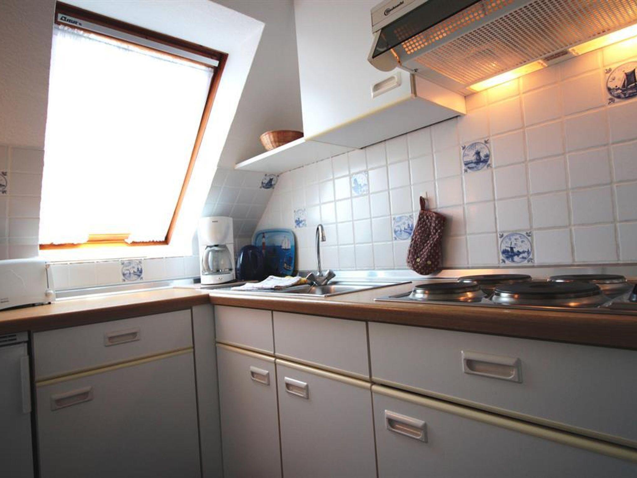 Ein Schlafzimmer (2 Betten, getrennt oder zusammen stellbar), Bad (Du/WC) und eine separate Küche, die mit Geschirr und Hausrat für den täglichen Bedarf ausgestattet ist, gehören zur Wohnung.