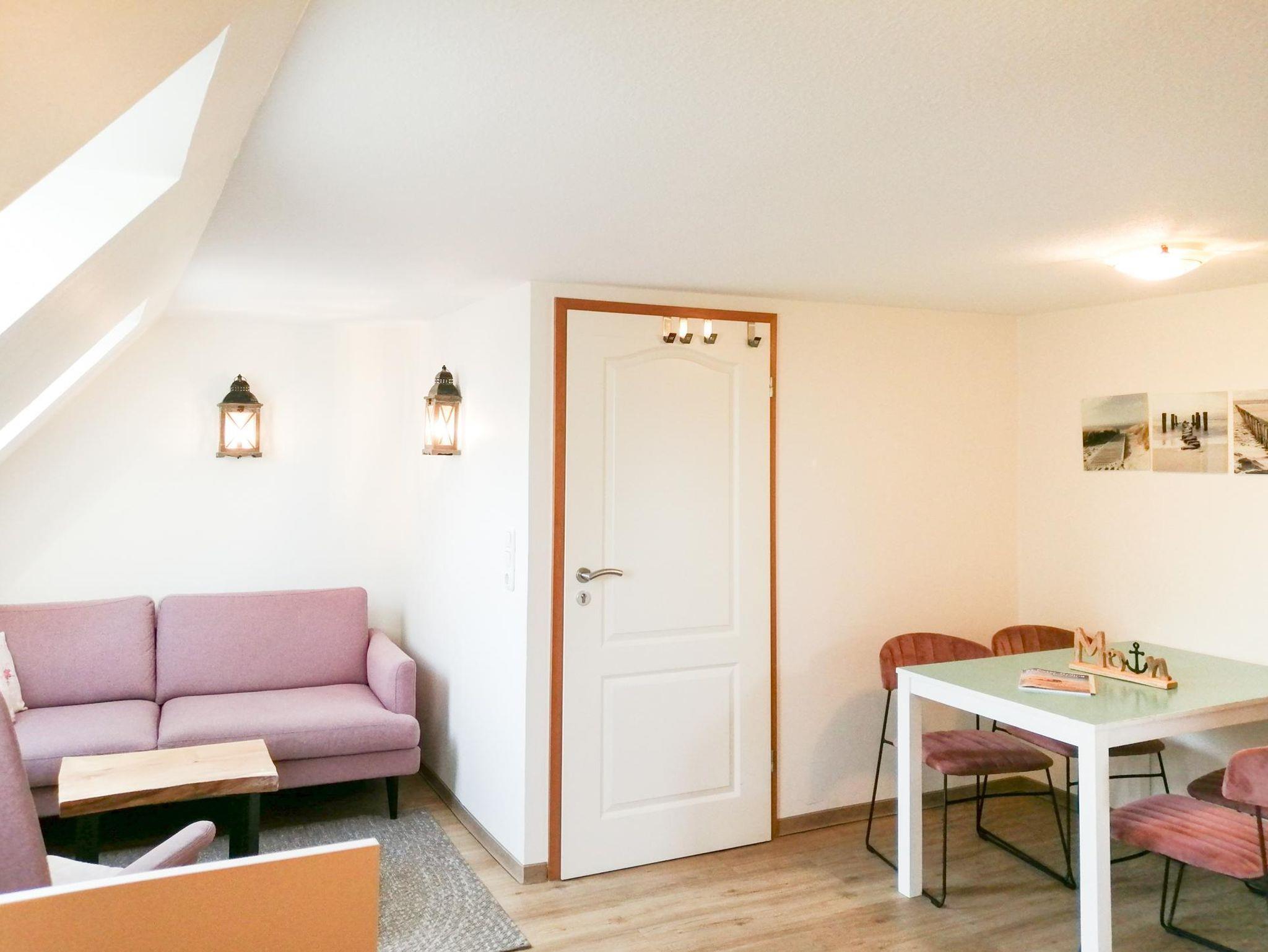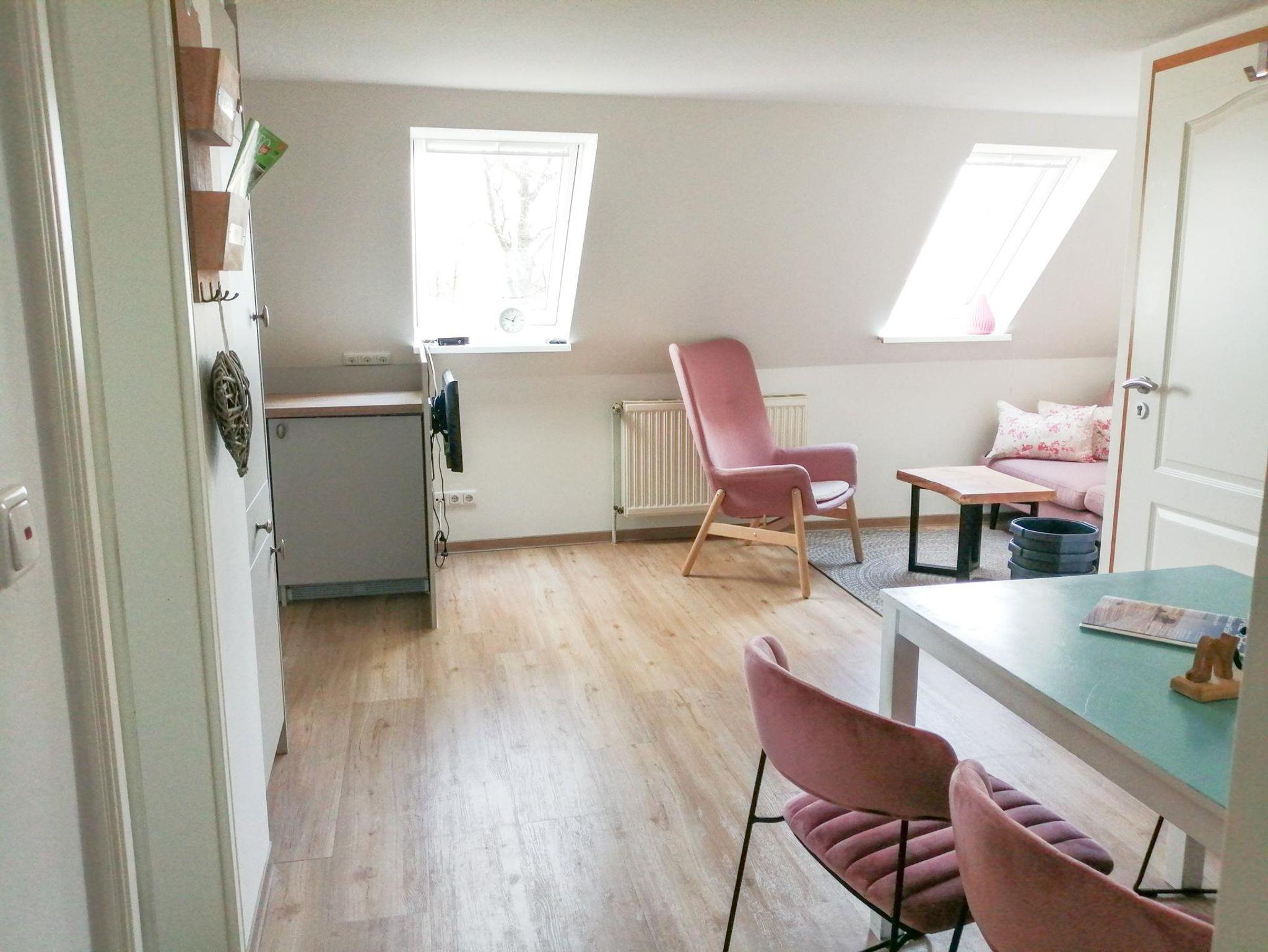 Die Ferienwohnung „Höhnerstall“ befindet sich im 1. OG des Bauernhauses und beschreibt den direkten Blick aus dem Schlafzimmer zu unseren fleißigen Frühstückseier-Lieferanten. Die Wohnung besteht aus einer Wohn- und Küchenkombination (Herd mit Backofen, Kühlschrank mit Gefrierfach, Geschirrspülmaschine, Toaster, Kaffeemaschine, Wasserkocher), von der aus sich das Bad abzweigt. Daneben befindet sich das Elternschlafzimmer und das Kinderzimmer verfügt über 3 Betten. Für das Kleinkind: Kinderhochstuhl, Steckdosenschutz, Treppenschutzgitter, Verdunkelungsmöglichkeit Kinderzimmer, Babybett. WLAN ist im Bauernhaus sowie im Garten und auf dem Hofplatz jederzeit verfügbar und zusätzlich buchbar; die Ferienwohnungen im Ferienhaus sind nicht für den WLAN-Empfang ausgelegt. Wir bitten um Verständnis.