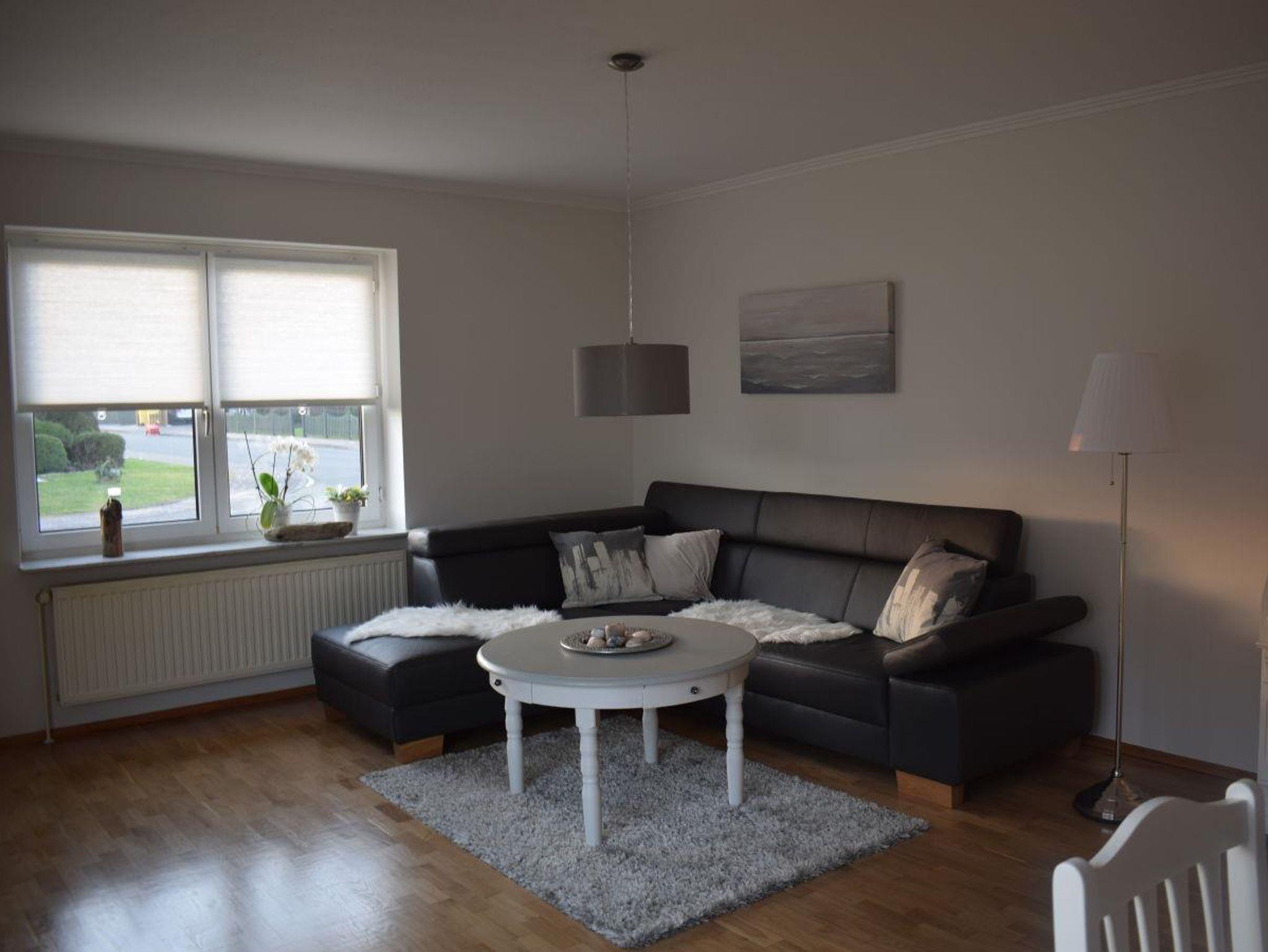 Im Wohnzimmer bietet das schwarze Ledersofa genügend Platz, um es sich gemütlich zu machen. In den beiden Schlafzimmern gibt es jeweils ein Doppelbett in der Größe 180x200 cm. WLAN ist natürlich vorhanden.