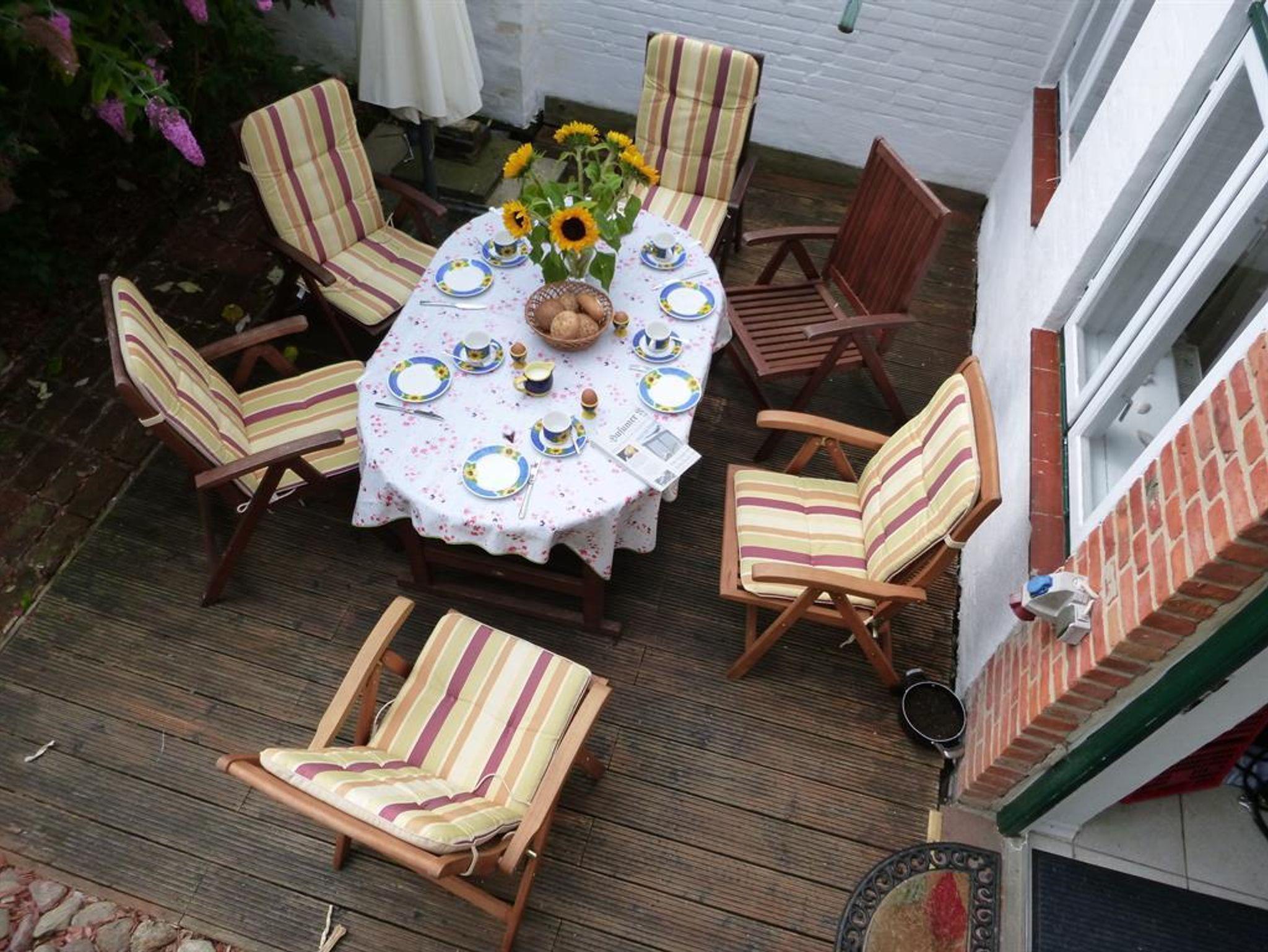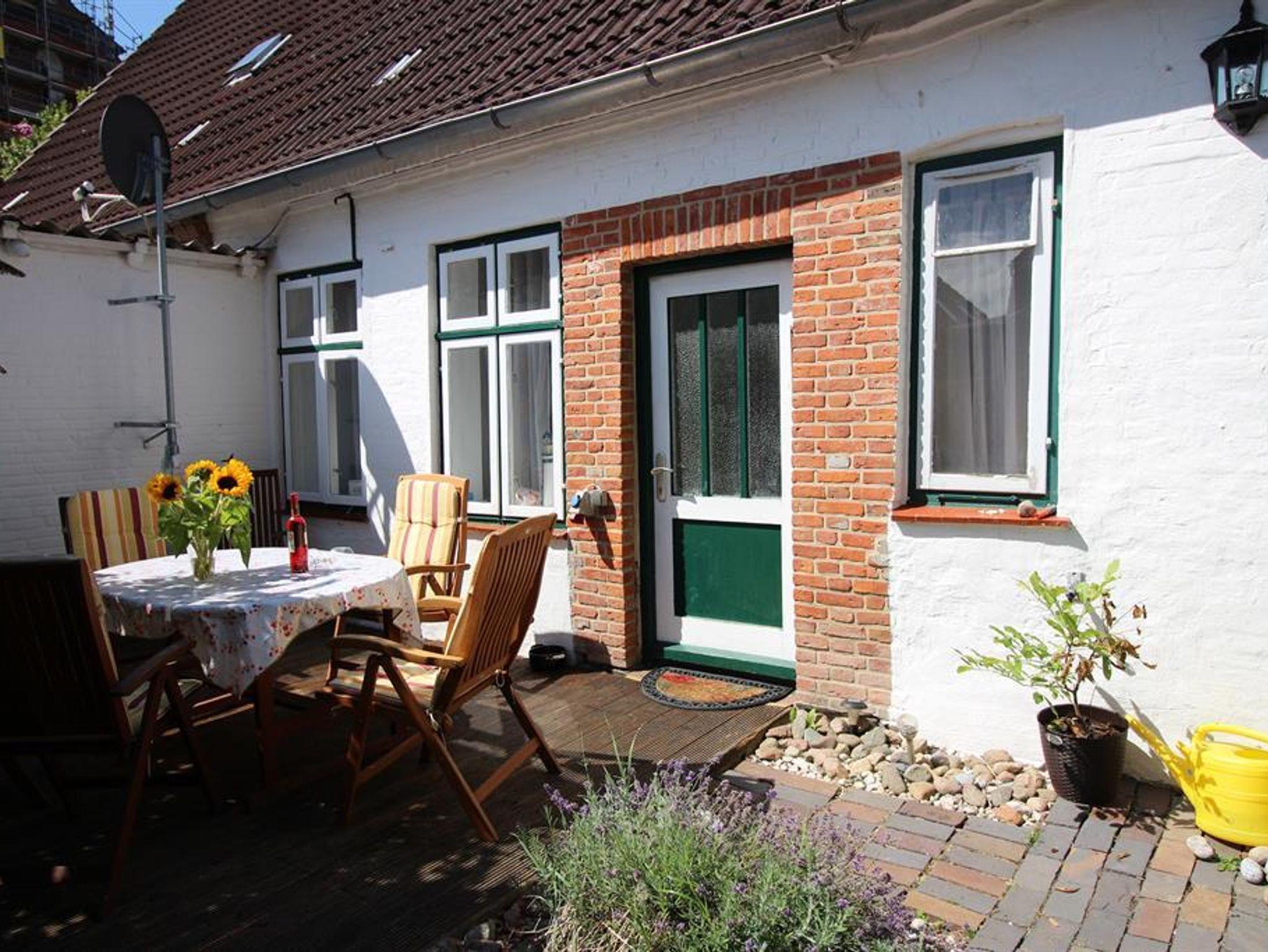 Gemütliches Ferienhaus am historischen Marktplatz von Garding mit Kamin und WLAN, ideal für Familien und Radwanderer.
