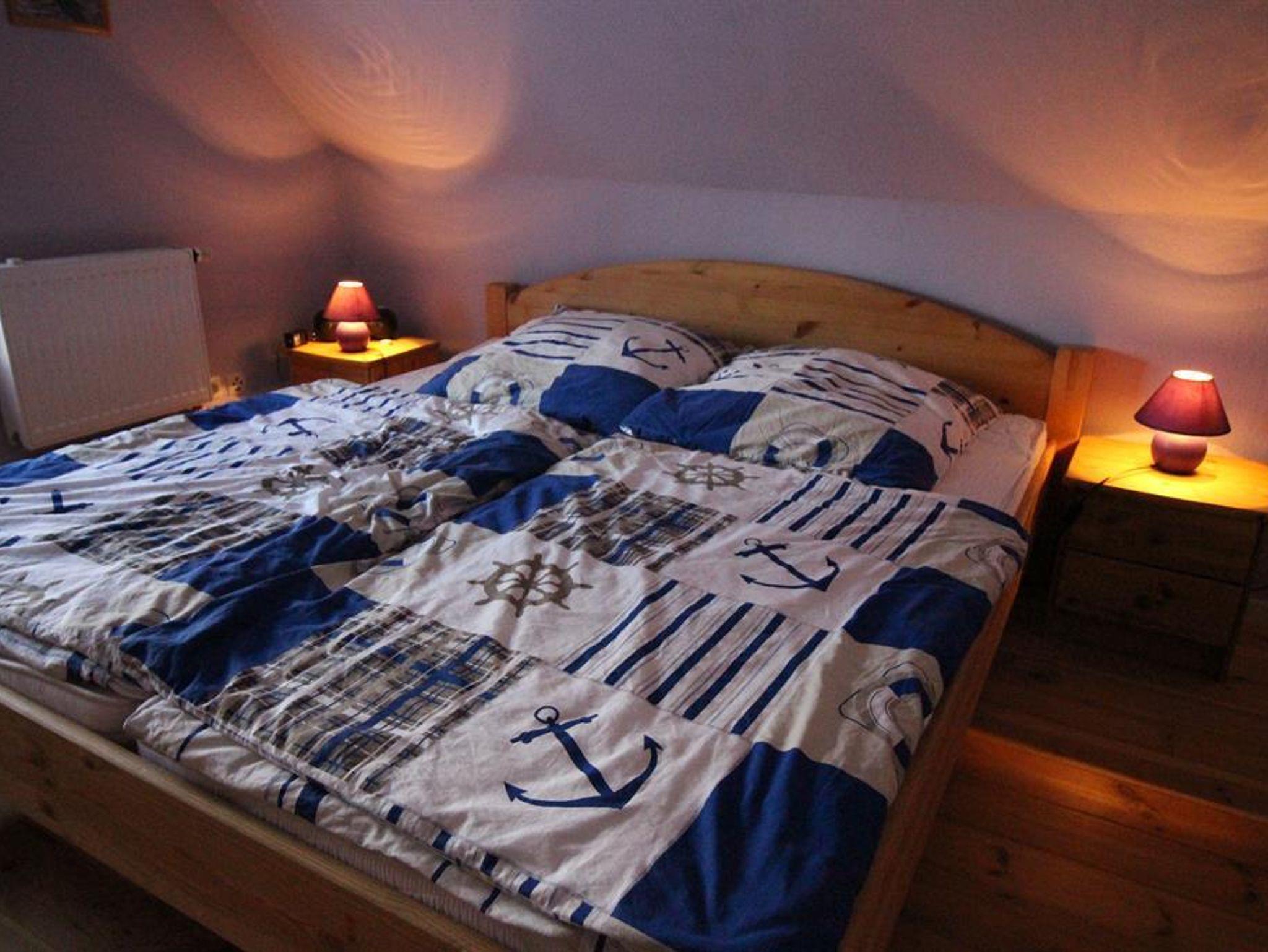 Das Ferienhaus Am Markt ist für bis zu 6 Personen geeigent und bietet Ihnen folgende Ausstattung: Der Wohnraum mit gemütlicher Sitzgruppe, Sat-TV, einem Kaminofen, einer Bücherauswahl und verschiedenen Gesellschaftsspielen lädt zum Erholen und Entspannen ein. Im Obergeschoss befinden sich die 3 Schlafräume für jeweils 2 Personen. 2 Schlafräume mit einem Doppelbett und 1 Schlafraum mit 2 Einzelbetten. Im Erdgeschoss befinden sich die separate, komplett ausgestattete Einbauküche inklusiive Geschirrspüler, das Tageslichtbad mit Dusche und WC.
