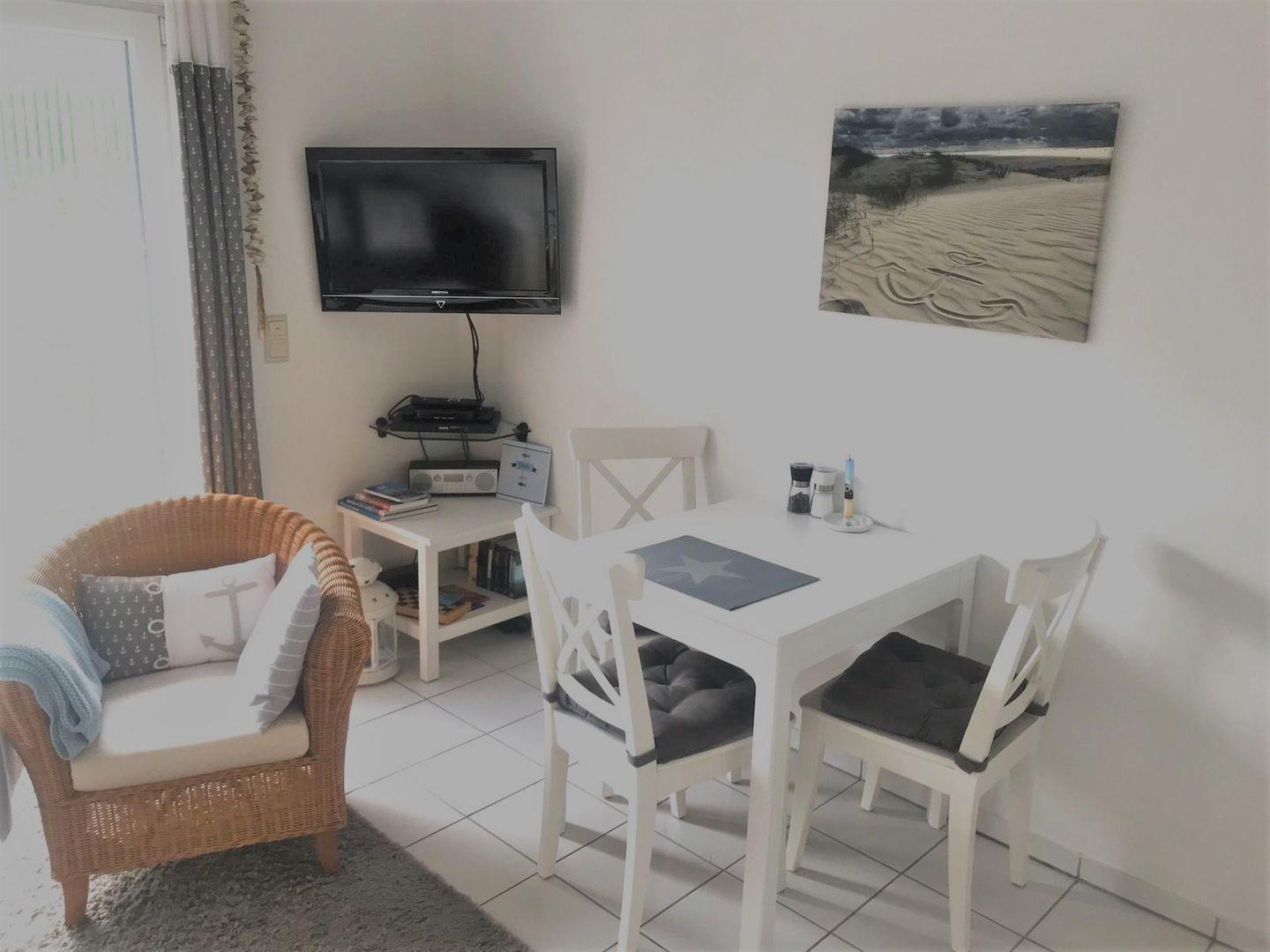 Die Wohnung "Tante Helene" bietet Platz für bis zu 4 Personen und ist somit perfekt für einen Familienurlaub oder einen Urlaub mit Freunden geeignet. Kinder und Hunde sind bei uns immer willkommen. Die Wohnung verfügt über ein gemütliches Schlafzimmer und ein komfortables Wohnzimmer mit einem Schlafsofa. Die voll ausgestattete Küche bietet alle notwendigen Utensilien, um Ihre Lieblingsgerichte zu Hause zu kochen. Das Badezimmer ist modern eingerichtet und bietet ausreichend Platz.