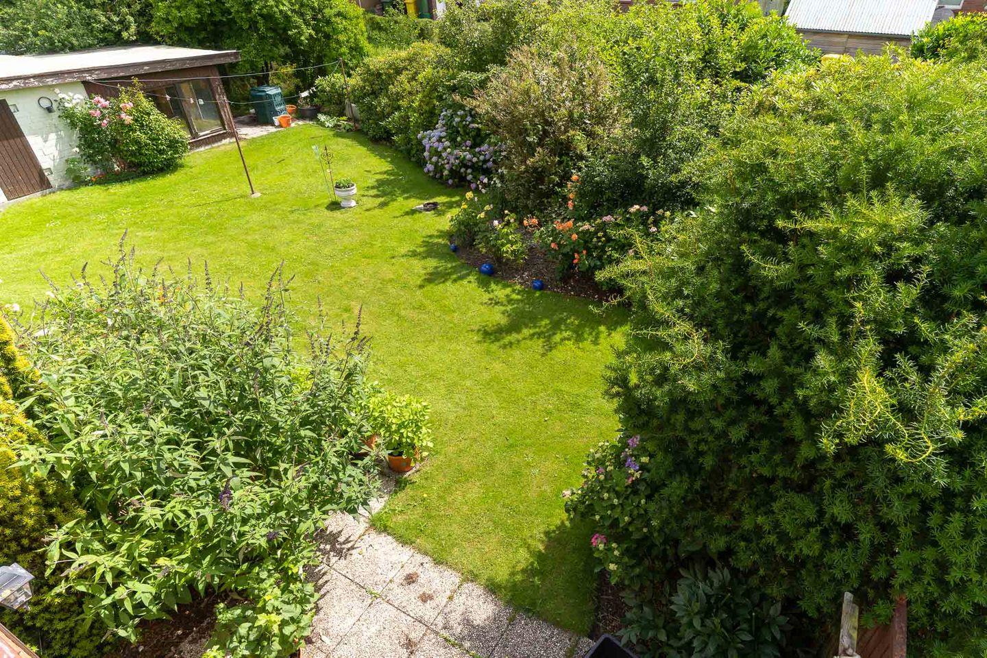 Der helle Wohnbereich ist der perfekte Ort, um zu entspannen und den Tag ausklingen zu lassen. Vom Wohnzimmer aus haben Sie direkten Zugang zum möblierten Balkon, wo Sie den Tag bei einem Glas Wein oder einem guten Buch ausklingen lassen können. Der Blick auf den Garten und die Umgebung ist einfach herrlich und lädt zum Verweilen ein.