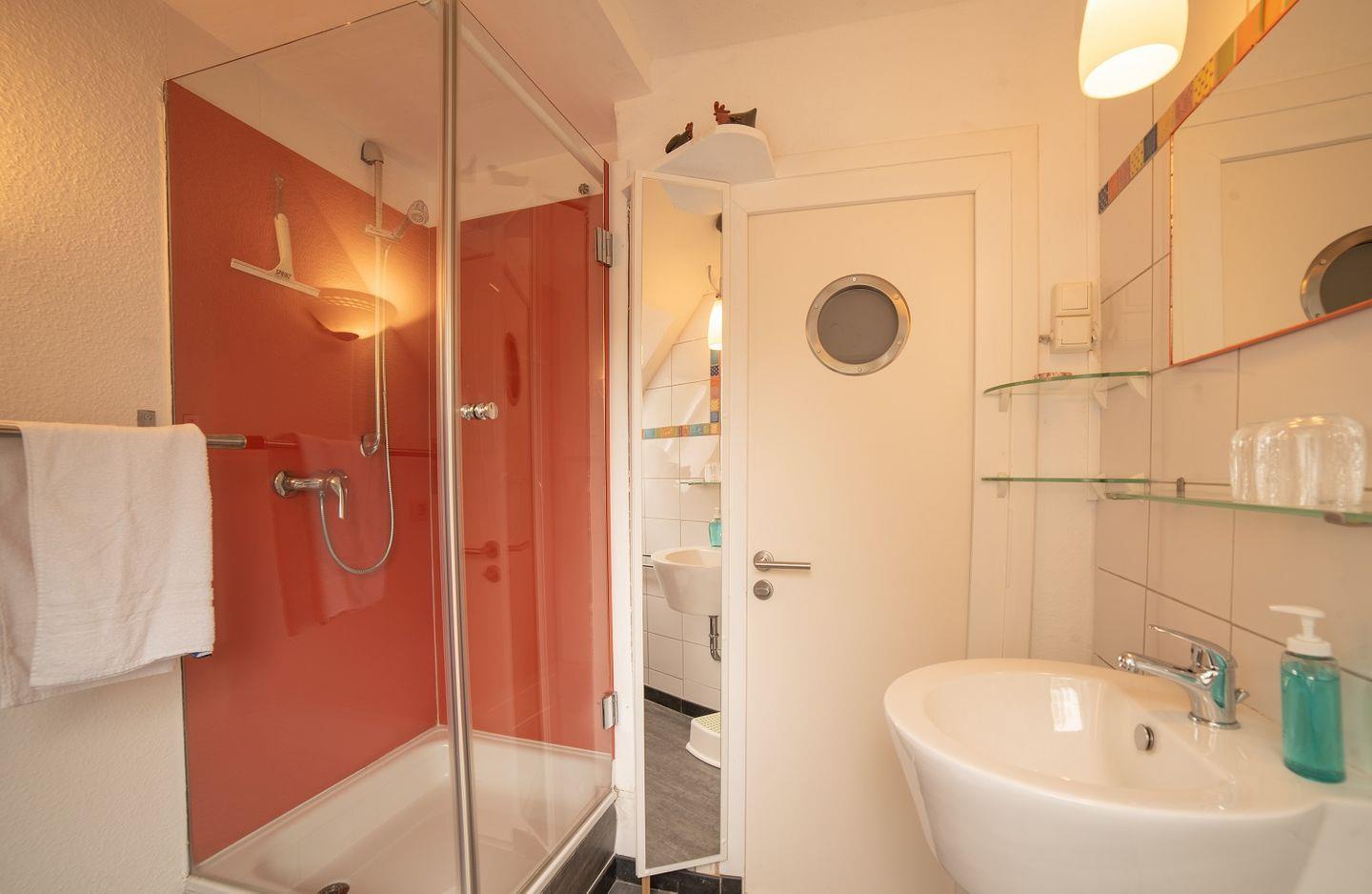Das Haus wurde gründlich renoviert und wird regelmäßig in Teilen neu ausgestattet. Im Erdgeschoss und auf der ersten Etage befinden sich jeweils ein Bad mit WC und Dusche. Die Küche bietet neben Herd mit Ceranfeld und Backofen, Dunstabzugshaube und Spülmaschine, allen Komfort – um sich auch im Urlaub in angenehmer Atmosphäre selbst zu versorgen.
