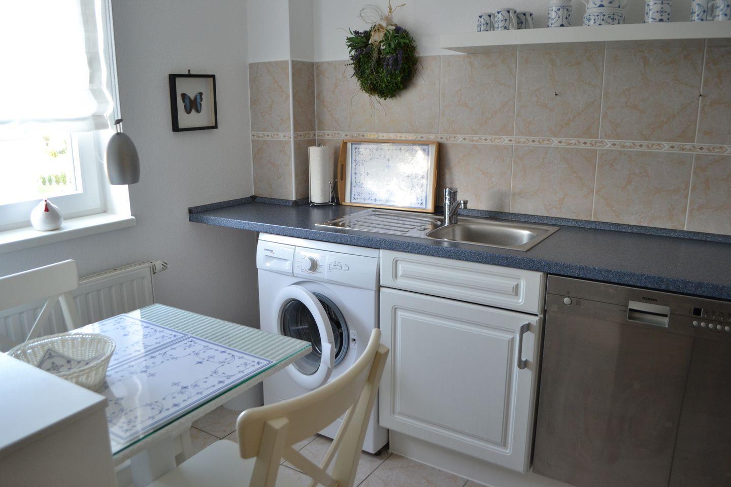 Küche mit kleinem Essbereich, Geschirrspülmaschine, Waschmaschine