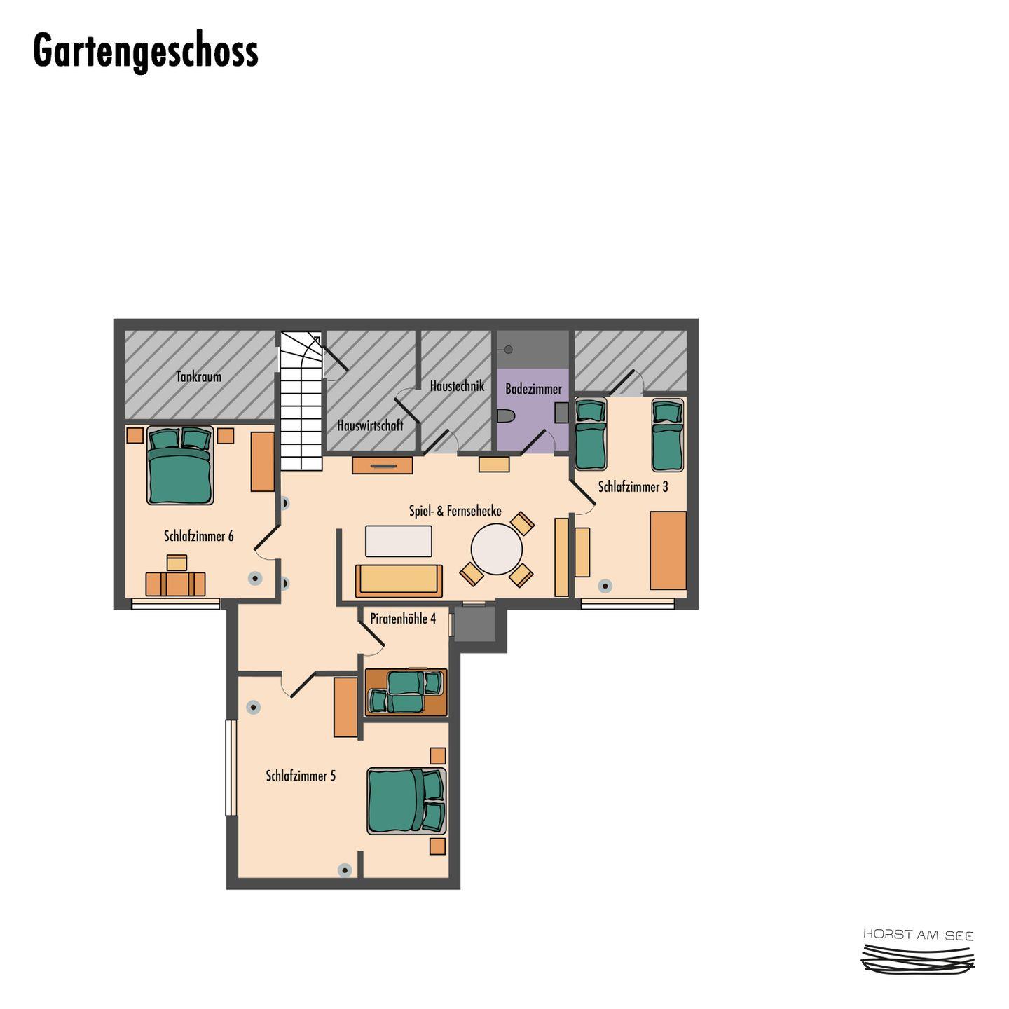 Auf gut 230 qm und zwei Etagen, können im Horst am See unsere Gäste komfortabel wohnen.